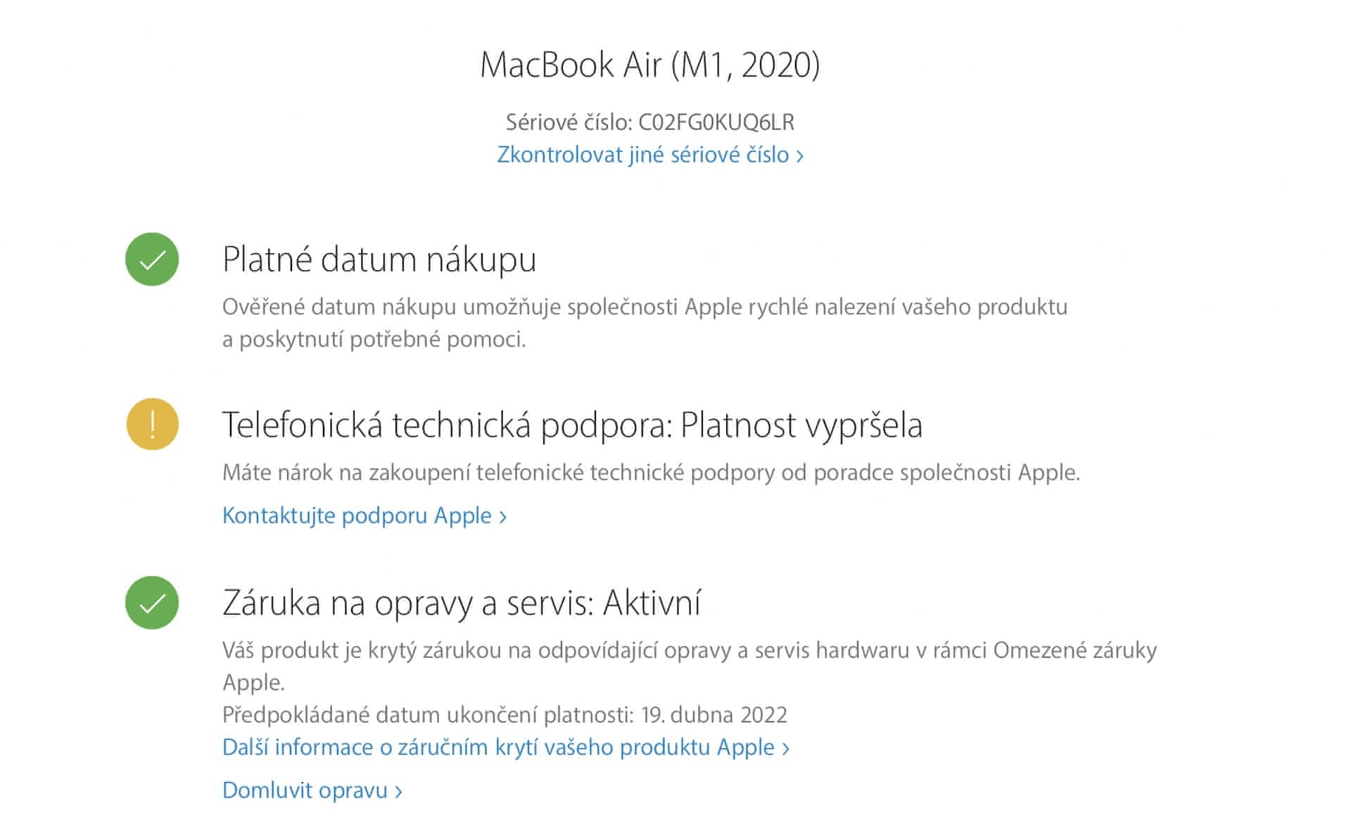 Prodám MacBook Air 13" Retina CZ Stříbrný M1 2020.