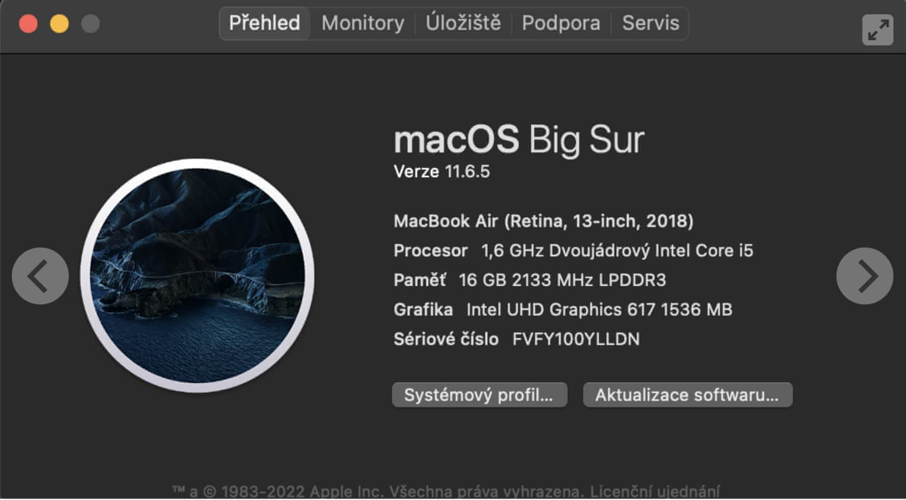Macbook Air 13.3" s Retina displayem, zakoupen 03/219, ve výbavě Intel i5 2core, 16GB RAM, 512GB SSD, příplatková konfigurace v původní ceně 52.990,-