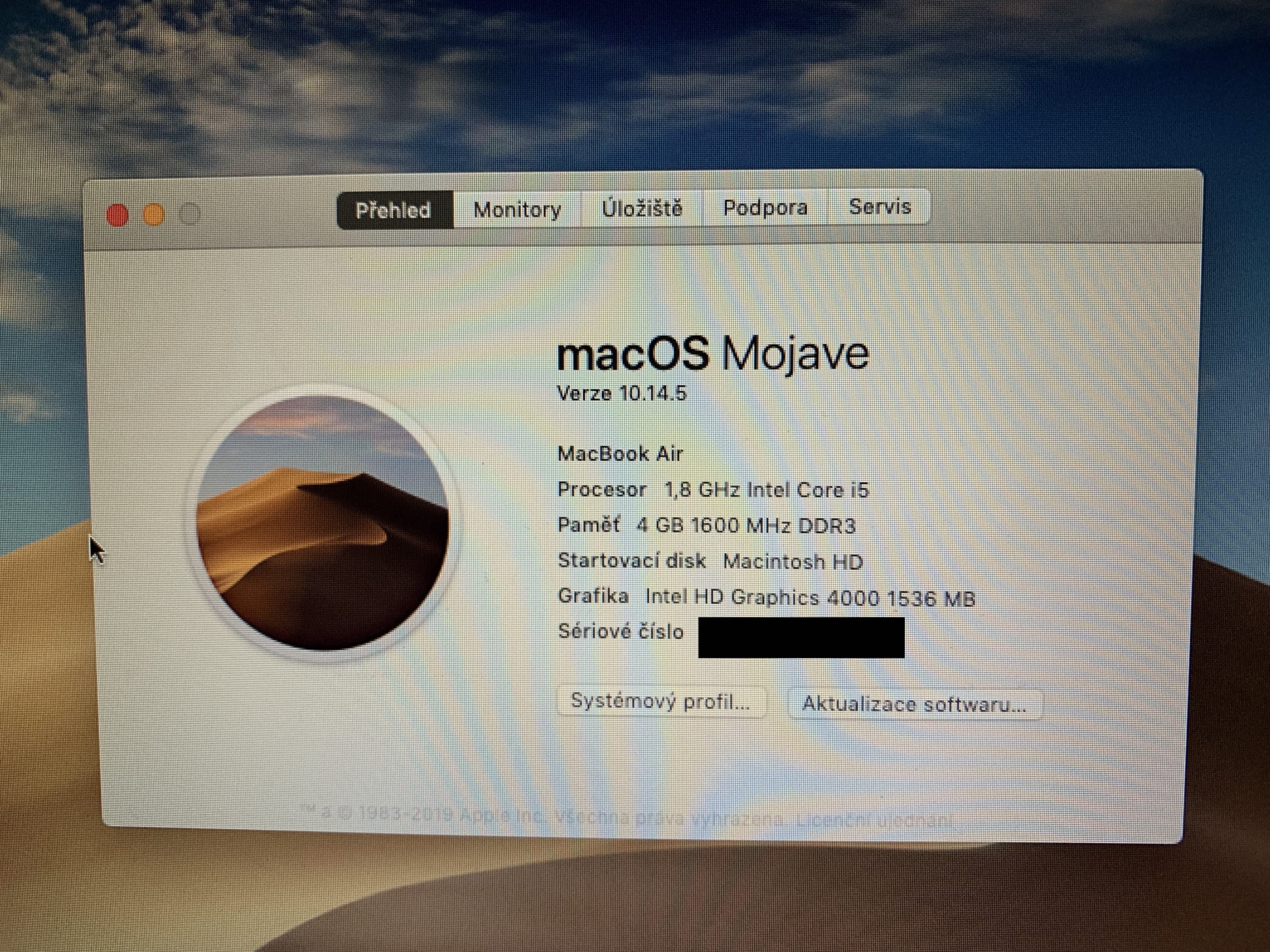 Důvod prodeje je přechod na nový MacBook Pro, kvůli potřebnému výkonu.