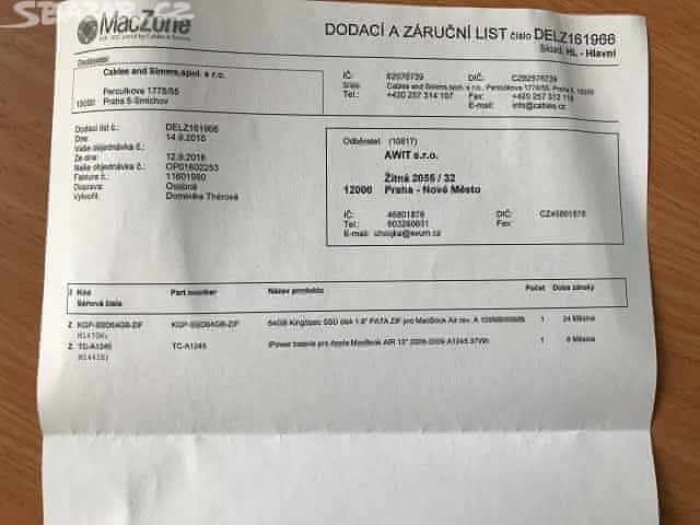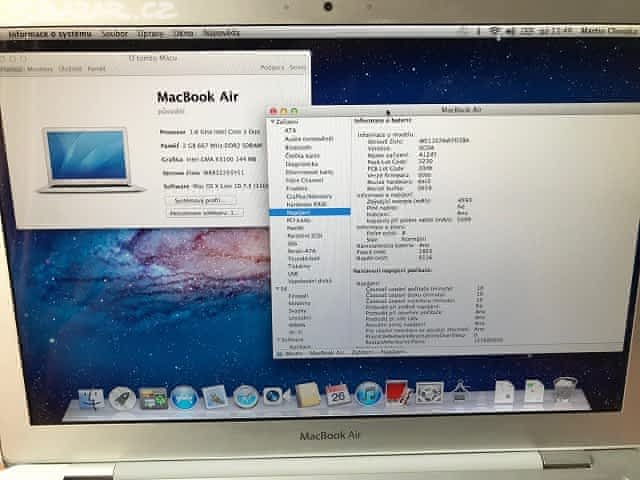 Dobrý den, rád bych prodal Macbook Air z roku 2008, jedná se o jeho první verzi. Macbook se ke mě dostal jako nefunkční, před rokem jsem si ho opravil výměnou baterie a k tomu jsem pro jeho zrychlení rovnou naistaloval SSD disk, pak už jsem ho nepoužíval. Parametry jsou 1,6Ghz Core 2 Duo, 2 GB RAM a 64GB SSD, Podsvícená klávesnice atd. Mac má pár ťunkaců, viz foto, ale je plně funkční. Naistalován Mac OS Lion, poslední podporovaný OS X. K notebooku je neoriginální nabíječka z AVACOMu. Výkon macbooku odpovídá době jeho uvedení a je třeba na to pamatovat. Mohu dodat i původní 80GB pevný funkční disk.