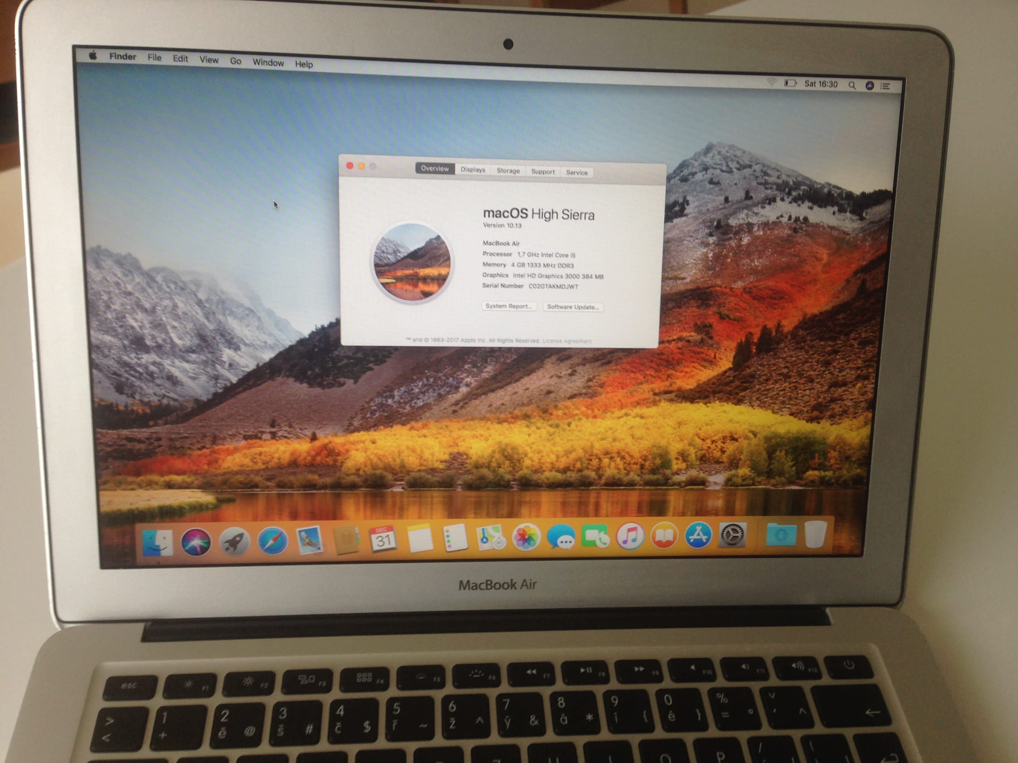 Notebook MacBook Air z roku 2011 v dobrém stavu, po kompletním servisu a výměny baterie (potvrzení o servisu mohu doložit). Žádné vady, pouze pár rýh zvenku. Parametry: Velikost: Výška 0.3-1.7 cm, šířka 32.5 cm, hloubka 22.7 cm (13 palců) Hmostnost:1.35 kg Výkon a paměť: Dual-Core Intel Core i5 1.7GHz/4GB/128GB flash Momentálně nainstalovaný Mac OS Sierra, v továrním nastavení. Příslušenství: Nabíjecí kabel s magsafe. Jen osobní předání.