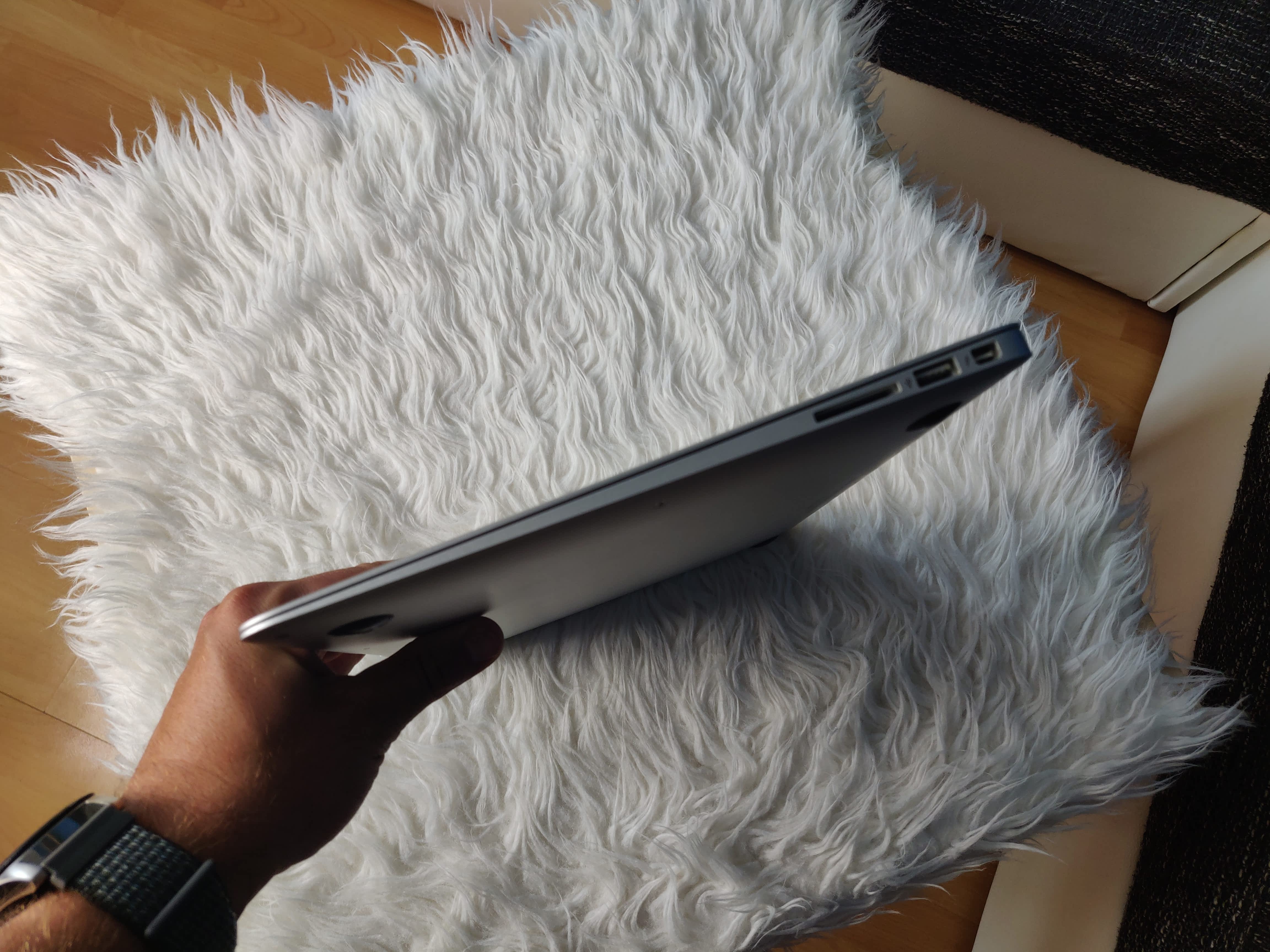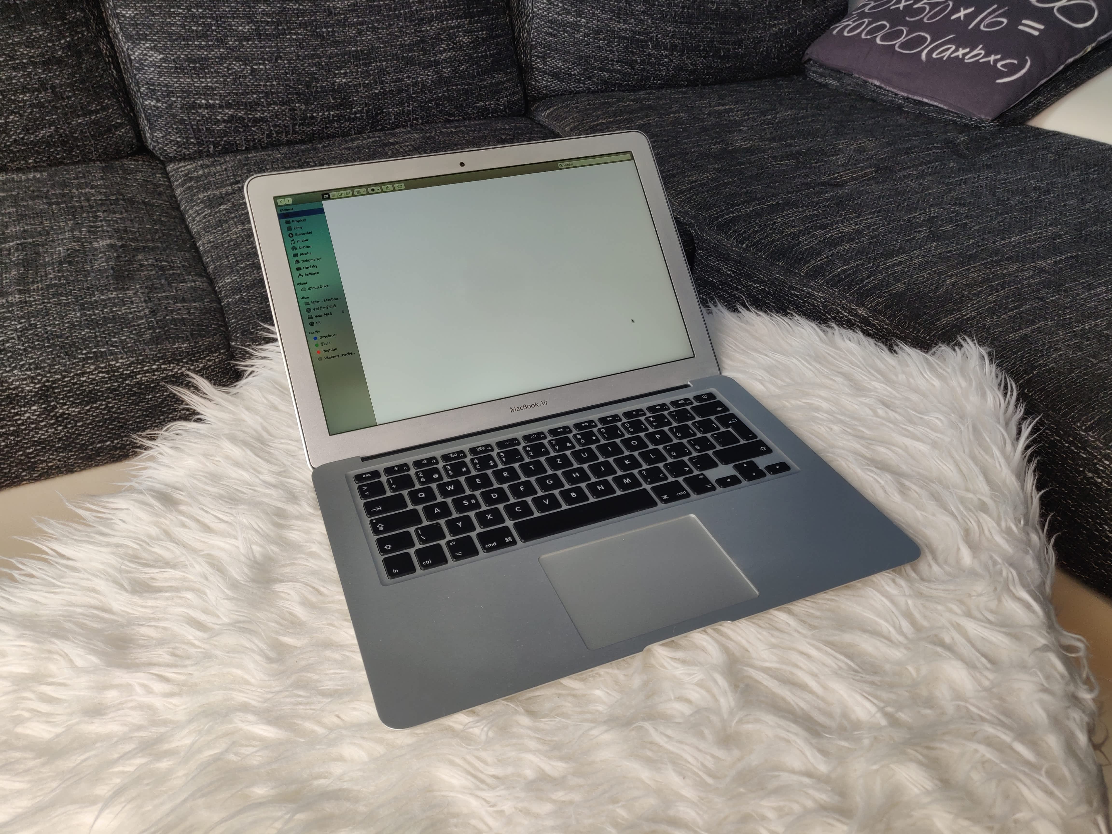 Použitý MacBook Air zakoupený v roce 2013. Stopy po běžném použití (odřeniny na víku). Baterie a SSD v dobrém stavu.