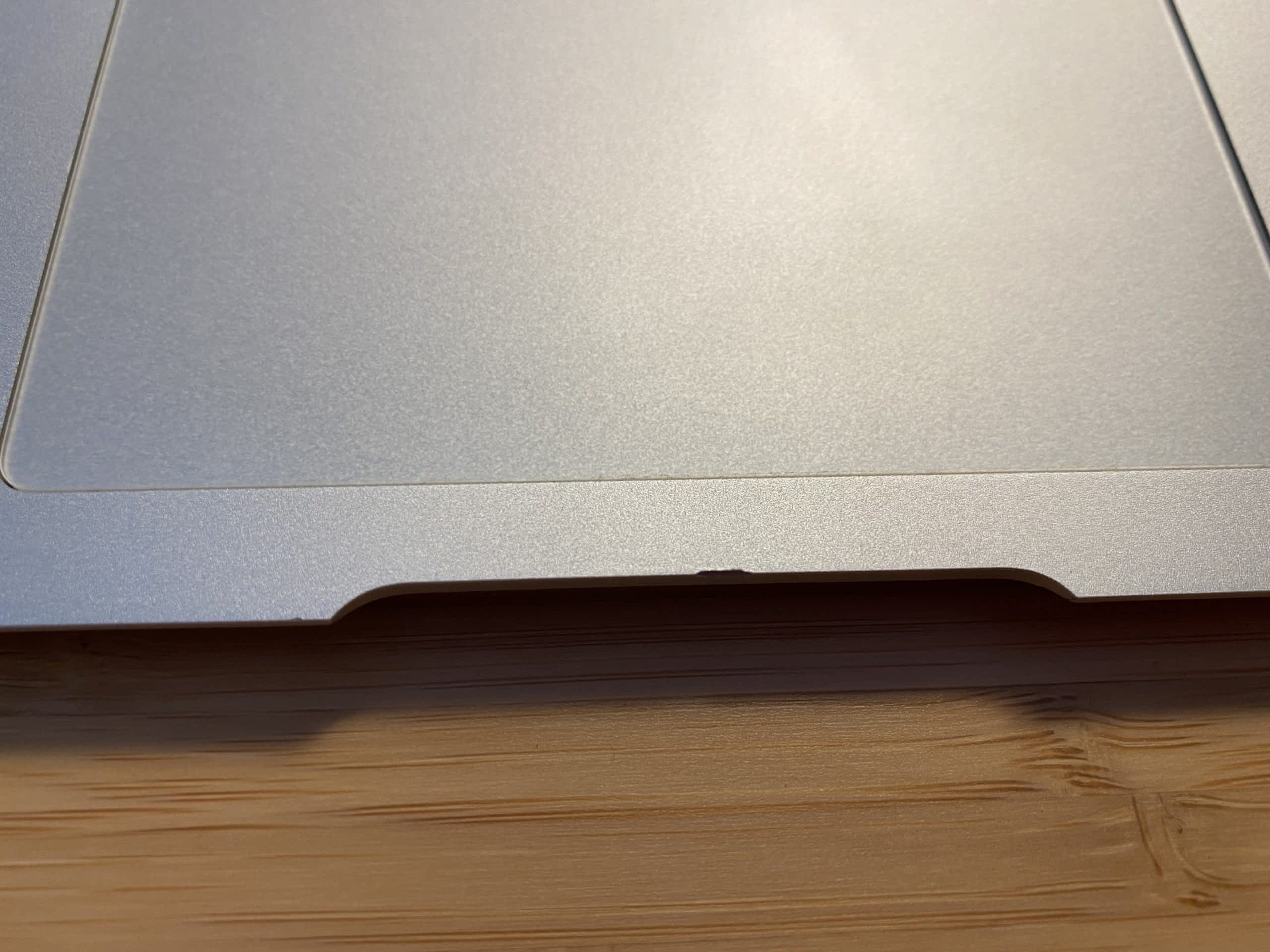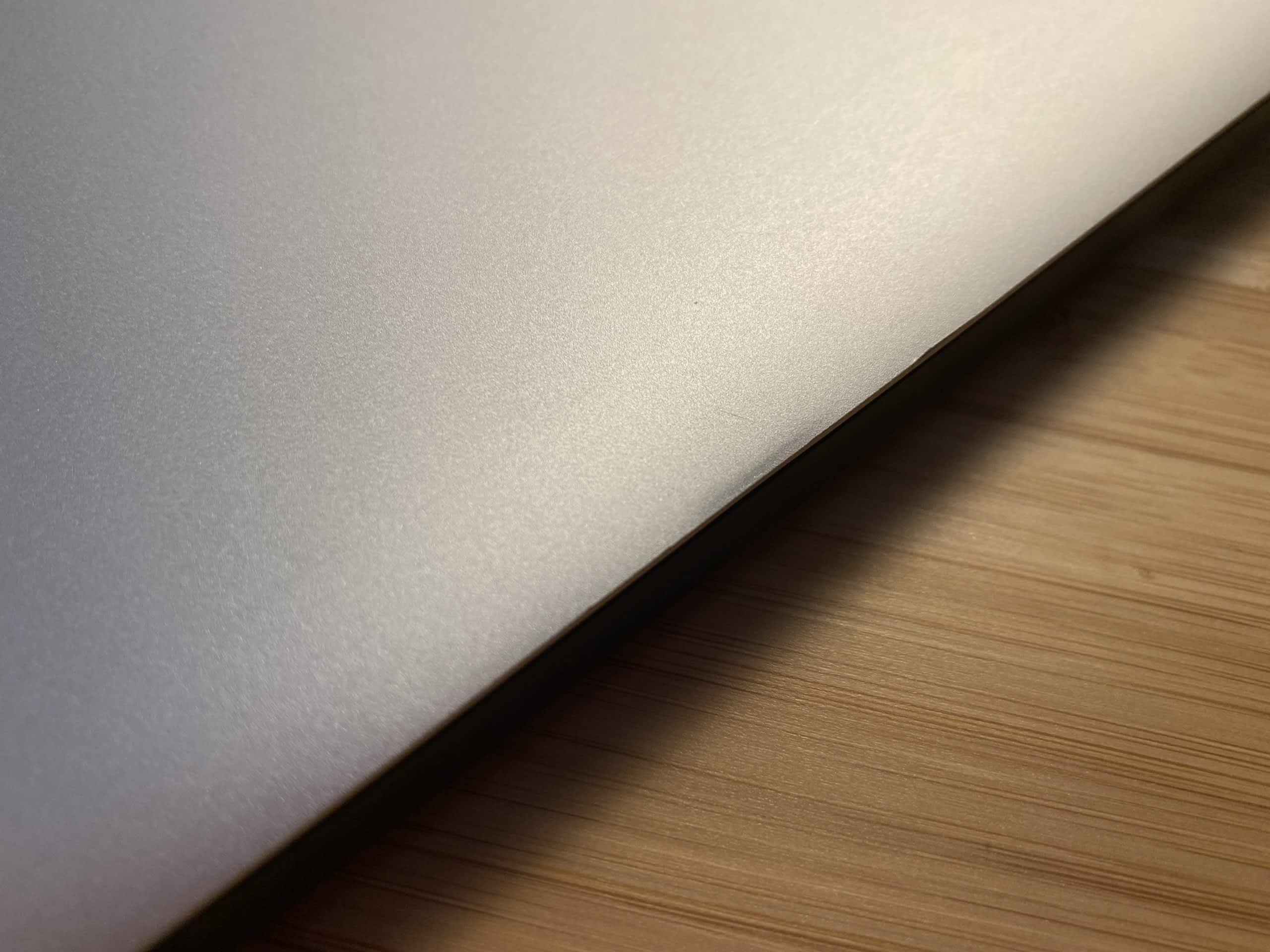 Na laptopu lze najít drobné oděrky a jiné známky používání. Dále na displeji prosvítá logo apple. Jde si toho všimnout hlavně na bílém pozadí, při normálním používání to většinou nejde vidět (viz například fotka informací).