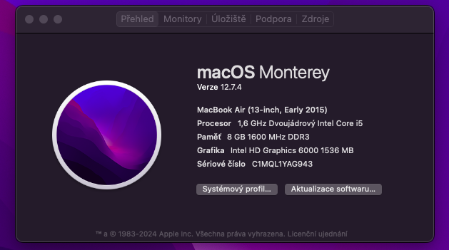Procesor: 1,6 GHz Dvoujádrový Intel Core i5