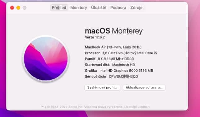 Procesor: 1,6 GHz Dvoujádrový Intel Core i5