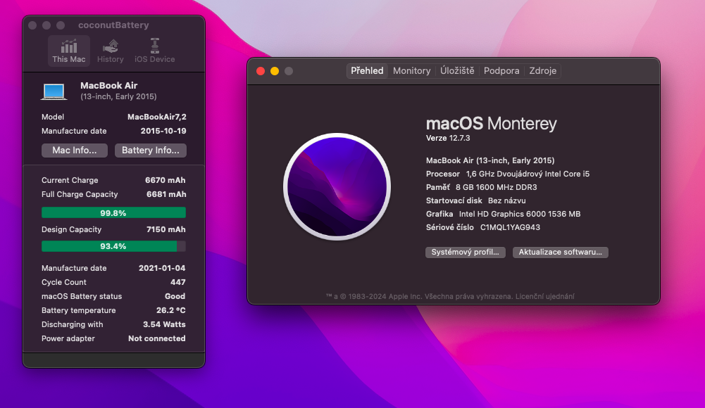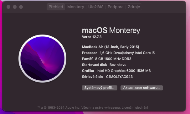 Procesor: 1,6 GHz Dvoujádrový Intel Core i5