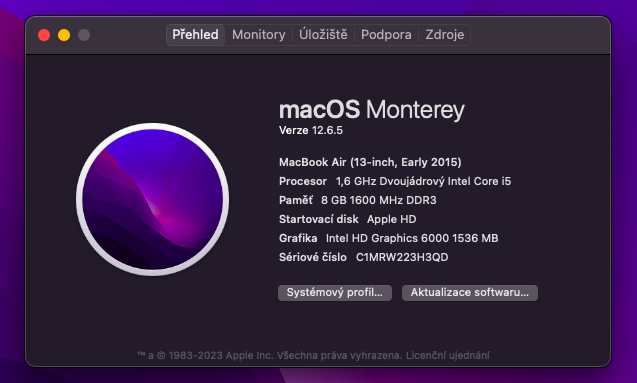 Procesor: 1,8 GHz Dvoujádrový Intel Core i5