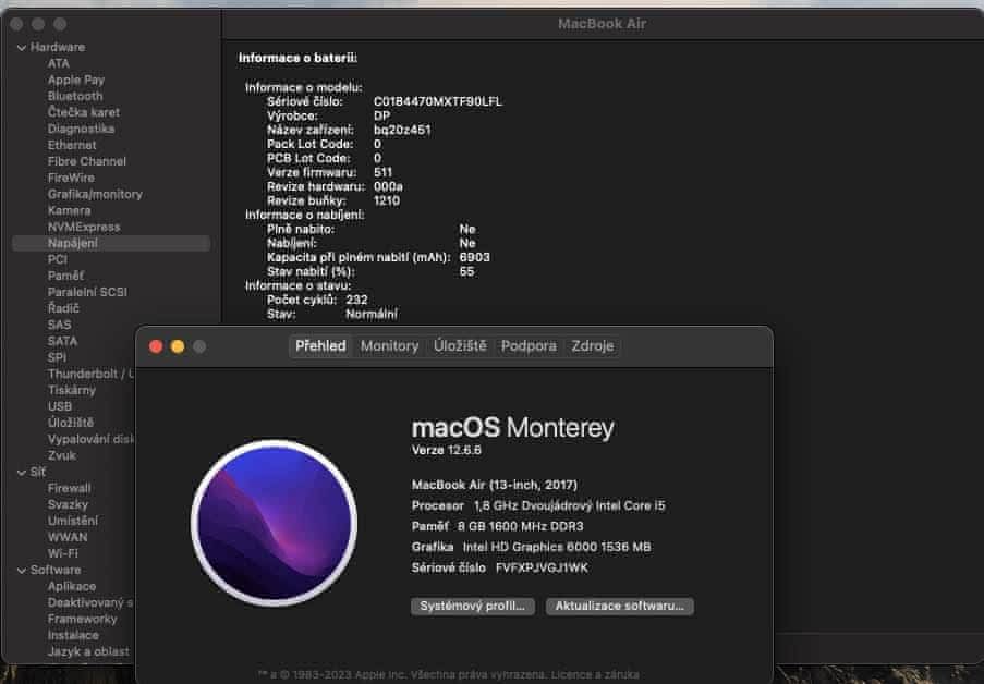 Počet nabíjecích cyklů: 232,