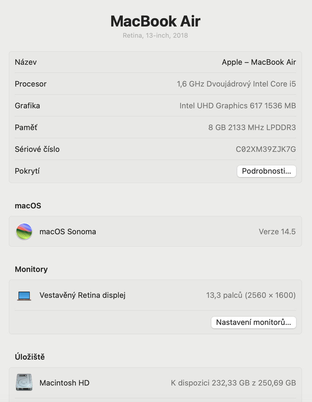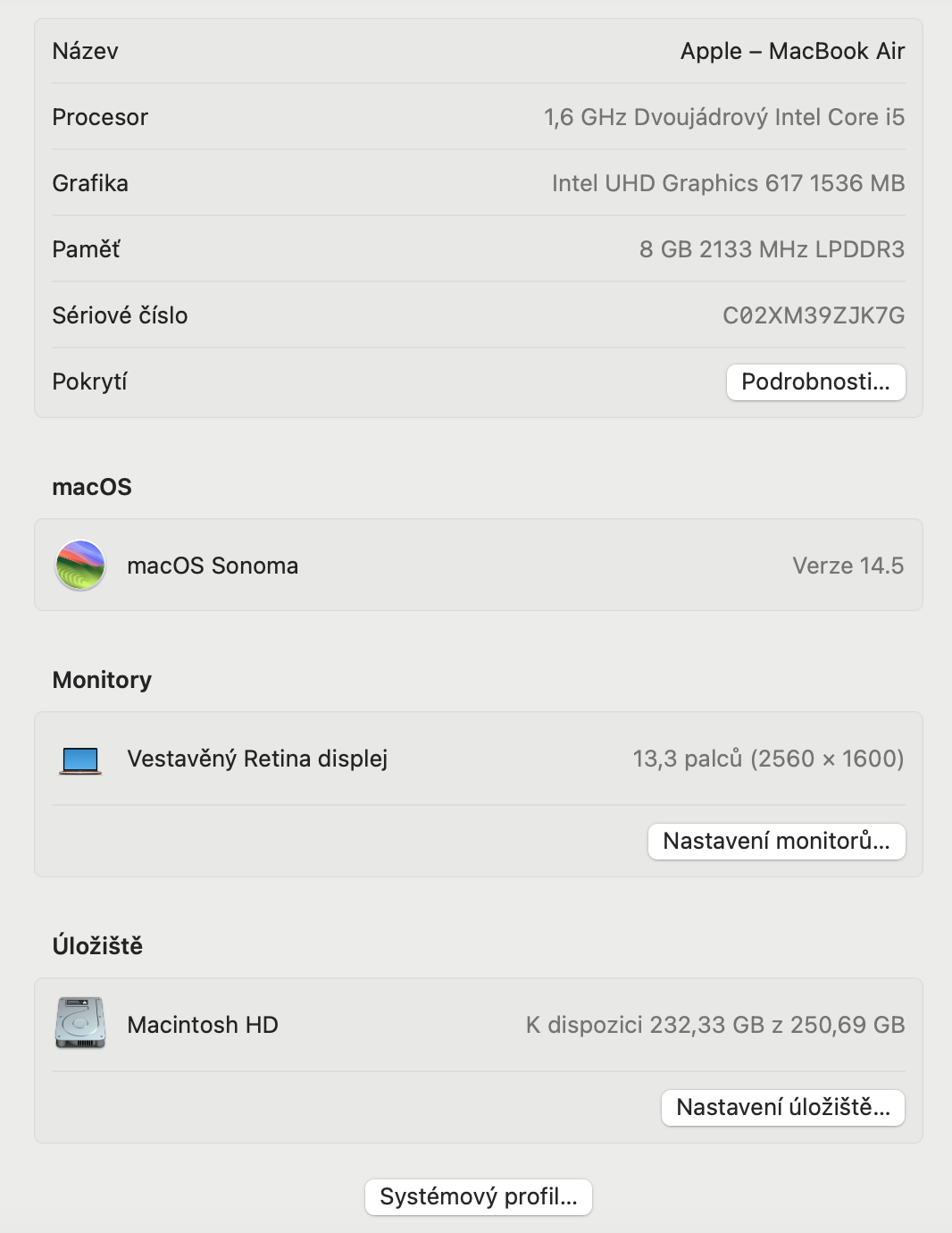 Procesor: 1,6 GHz Dvoujádrový Intel Core i5
