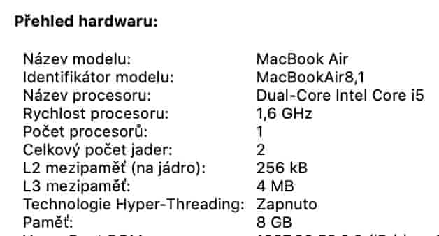 rád bych prodal svůj MacBook Air 2018, kupovaný v květnu 2019 (záruka do 20.5.2021) v iWantu. Jedná se o verzi se 128GB SSD, procesor i5 1,6 GHz, 8 GB RAM, ve space grey provedení. Baterie 112 cyklů.