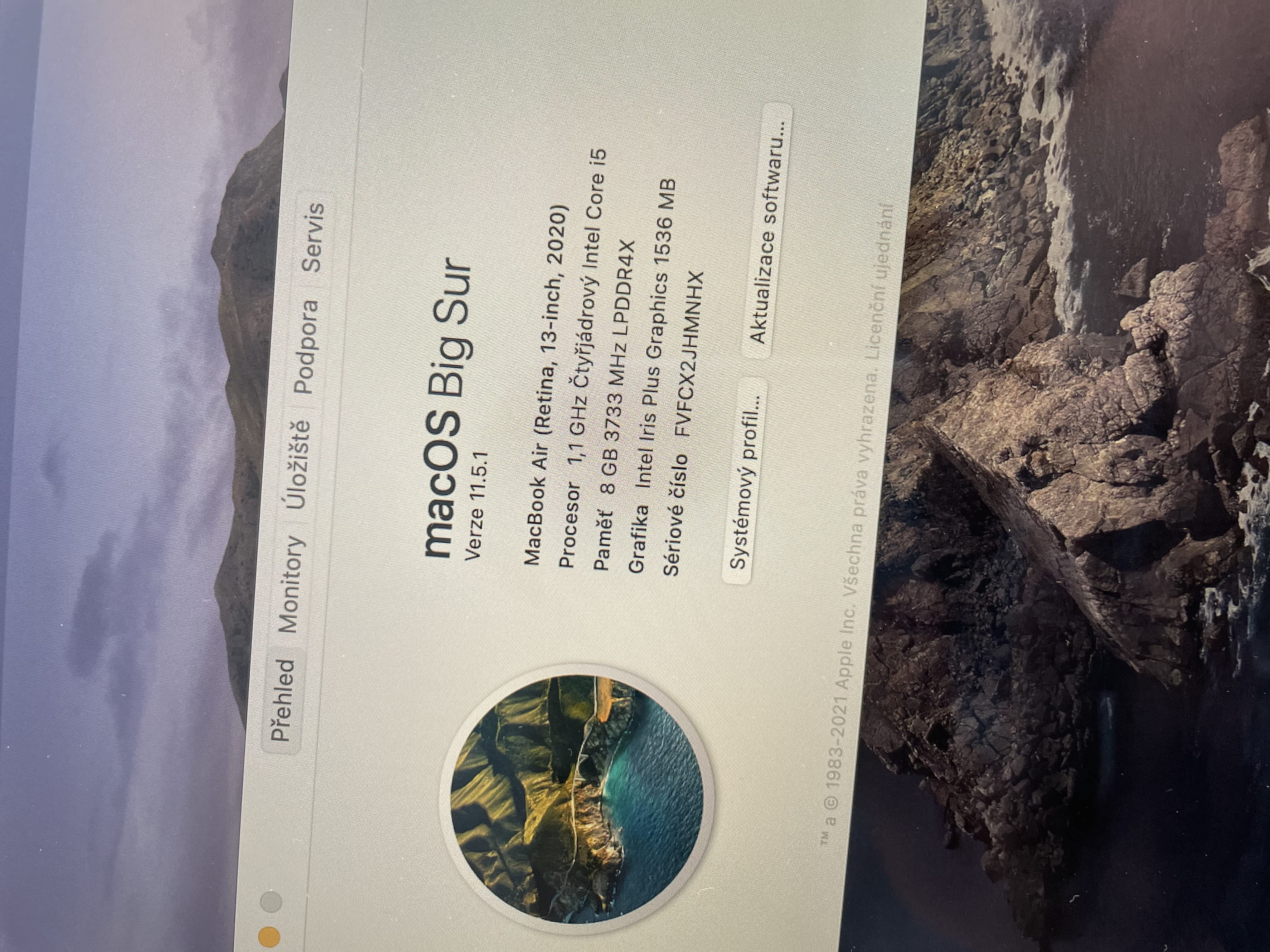 Prodám MacBook Air 2020, i5, 8GB, 256GB SSD, počet cyklů baterie 64.