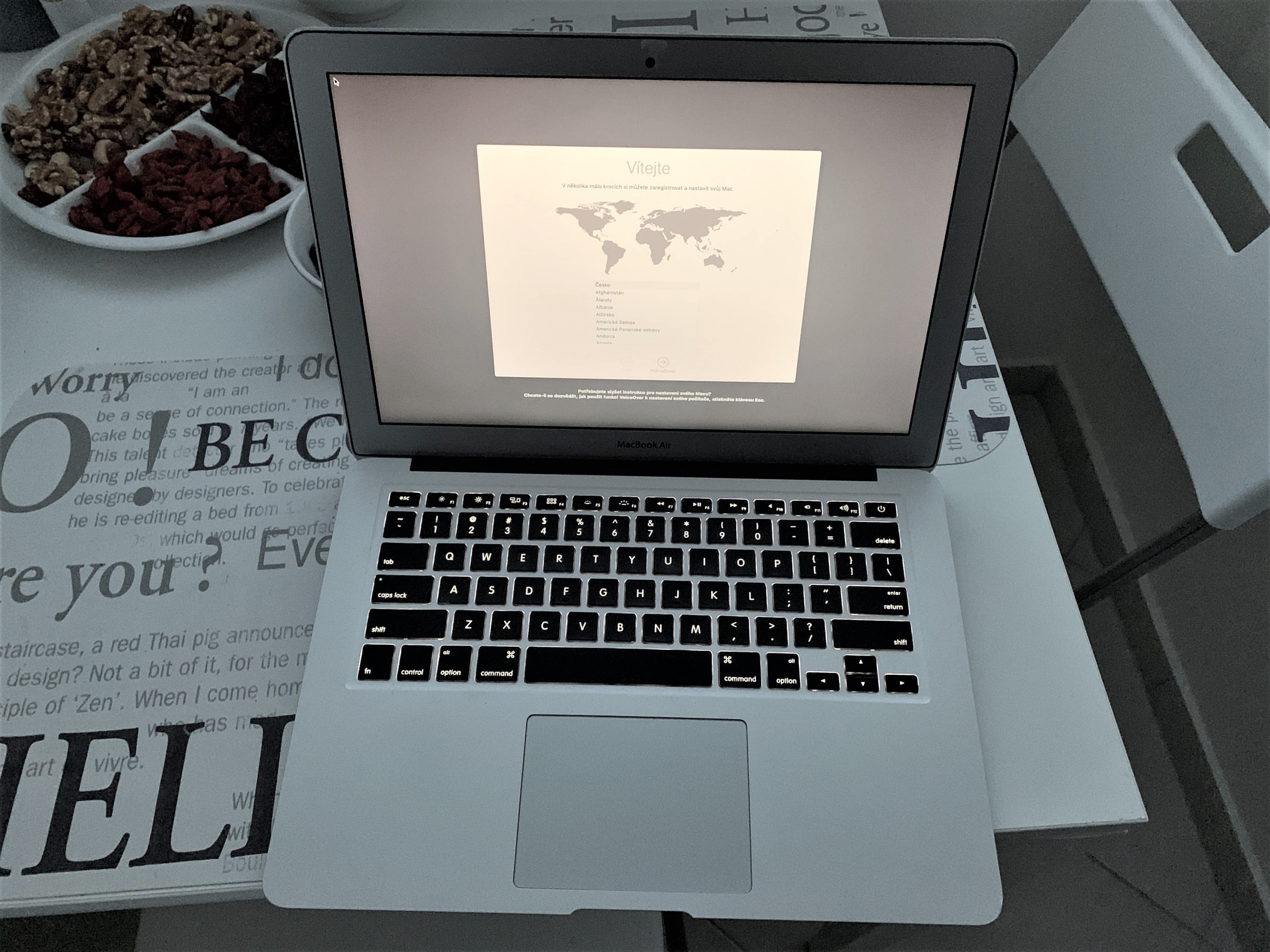 Apple MacBook Air, 2012, procesor Intel i5, RAM 4GB, SSD 128GB + dalsich 128GB na SSD karte v Nifty Drive (viz foto), nová nabíječka, pouzdro be.ez, čistá instalace macOS Mojave