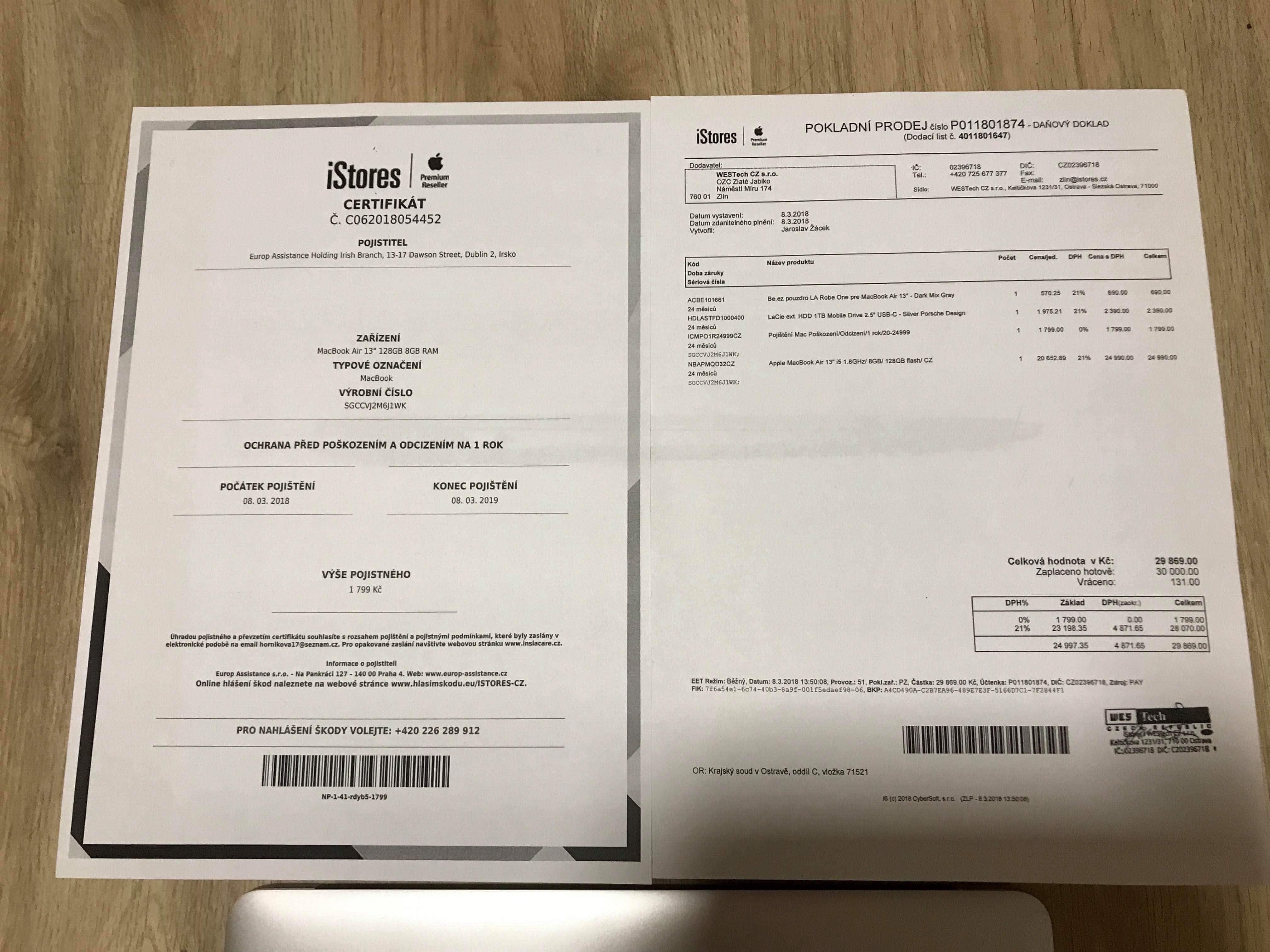 MacBook byl zakoupen 8.3.2018 v iStores jako veškeré příslušenství co k němu přidávám.