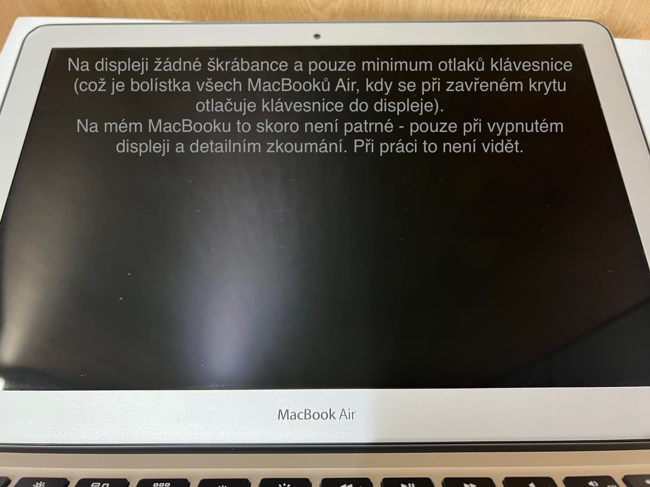 – na displeji jen minimum otlaků klávesnice (nemoc všech MacBooků, kdy se klávesnice otlačuje do displeje)