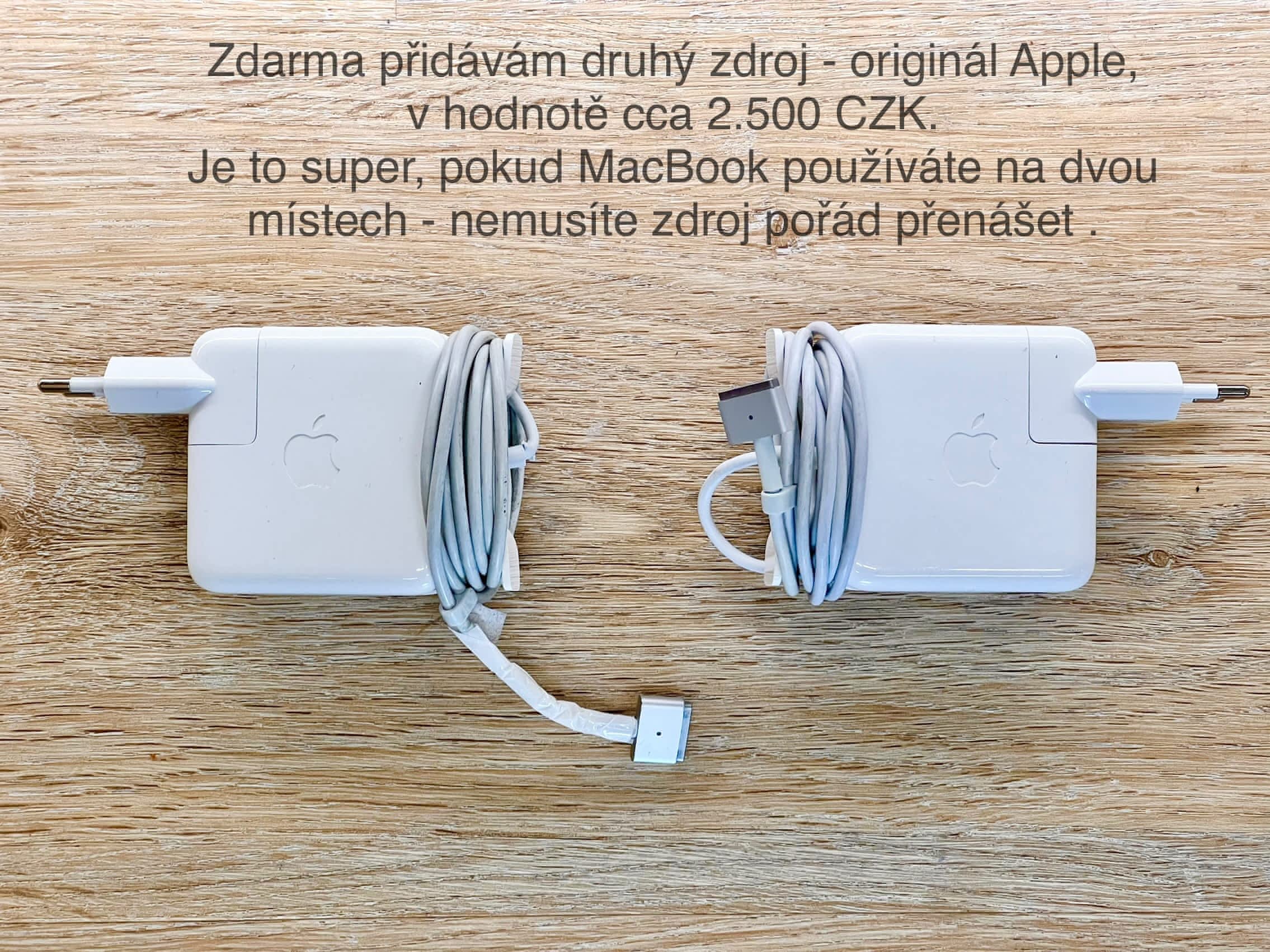 Přidávám zdarma originál APPLE 2. zdroj (cena 2.500 CZK) – super, pokud se pohybujete mezi kanceláří a domovem – nemusíte ho tahat.