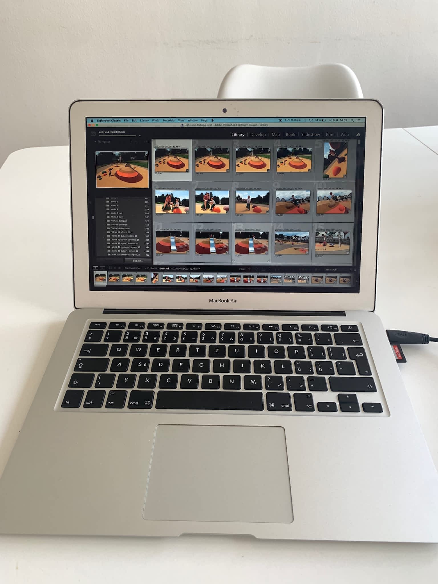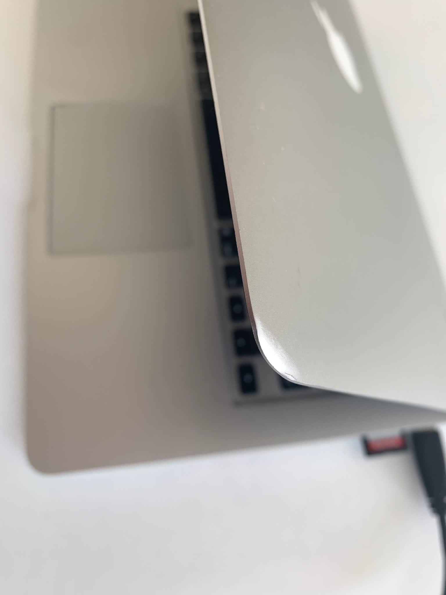 Bohužel přestal fungovat Thunderbolt konektor (připojení externího displeje), čímž pro mě ztratil využití. Jinak pracuje jak hodinky – utáhne lightroom i střih videa, frčí SD karty i USB úložiště. Naťuklý roh se přihodil asi někdy v roce 2015 a nemá vliv na funkčnost.