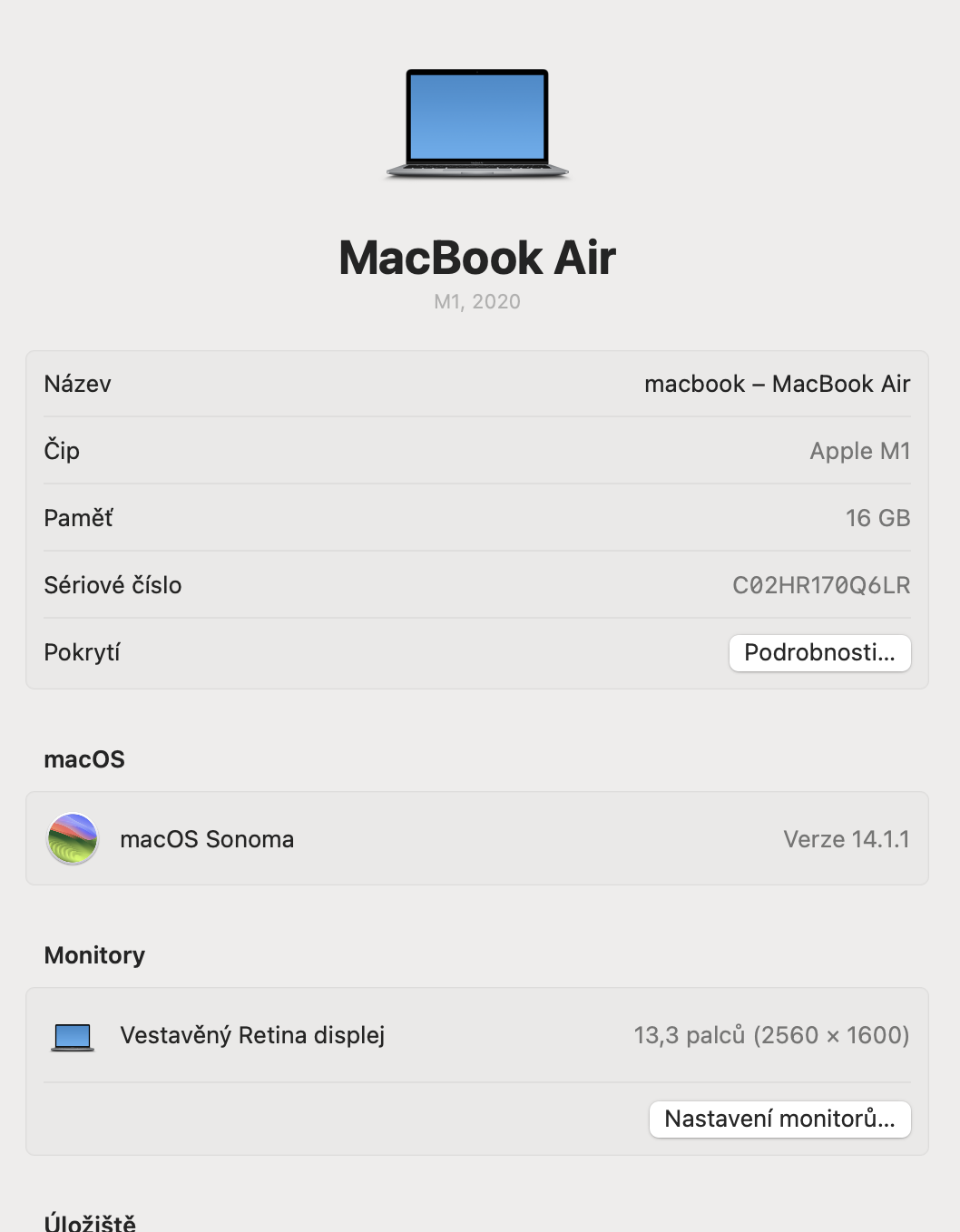 Prodám MacBook Air 13" Retina CZ M1 2020, 16GB!