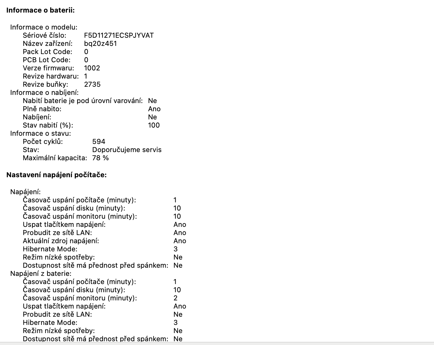 Macbook M1 má luxusní výdrž na baterku – kapacita baterky 78%. Výdrž ukazuje cca 18-19h…