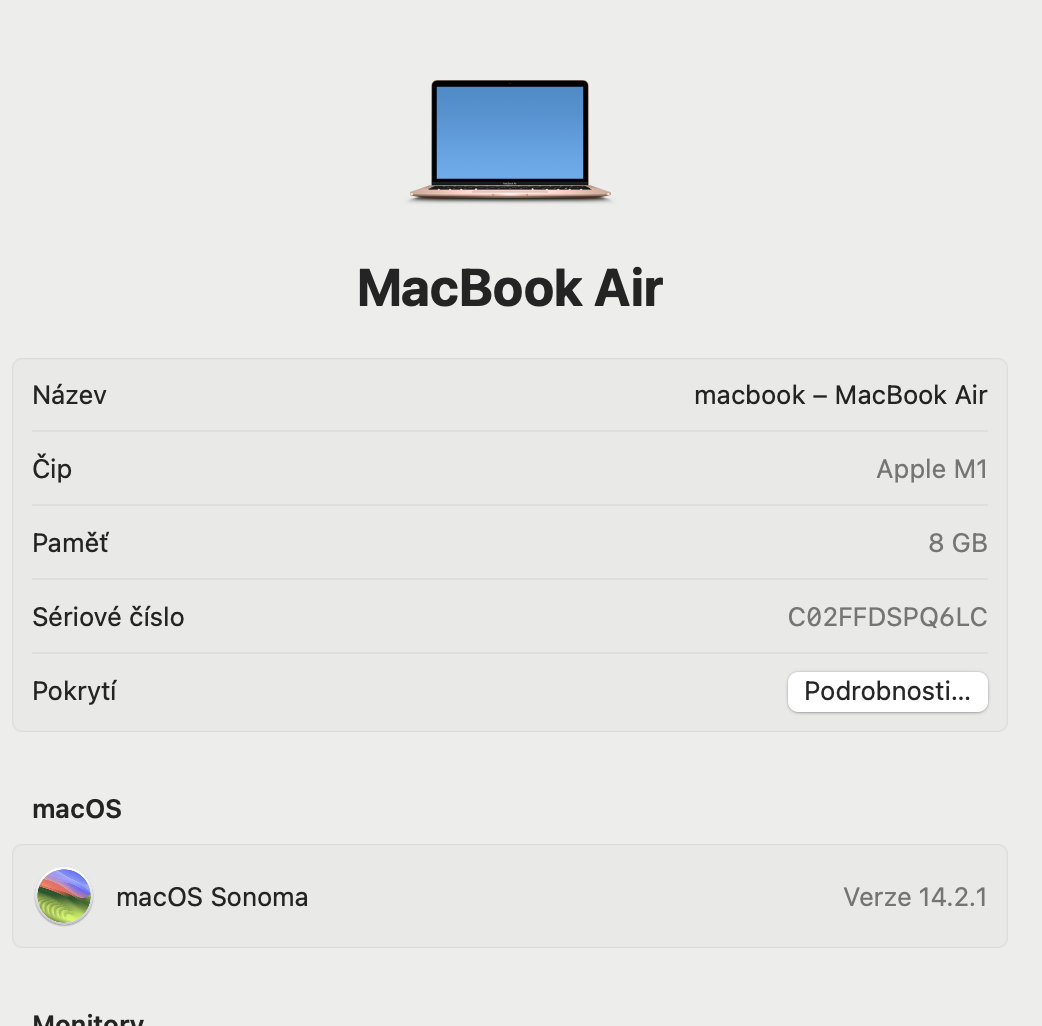 Prodám MacBook Air 13" Retina CZ M1 2020.