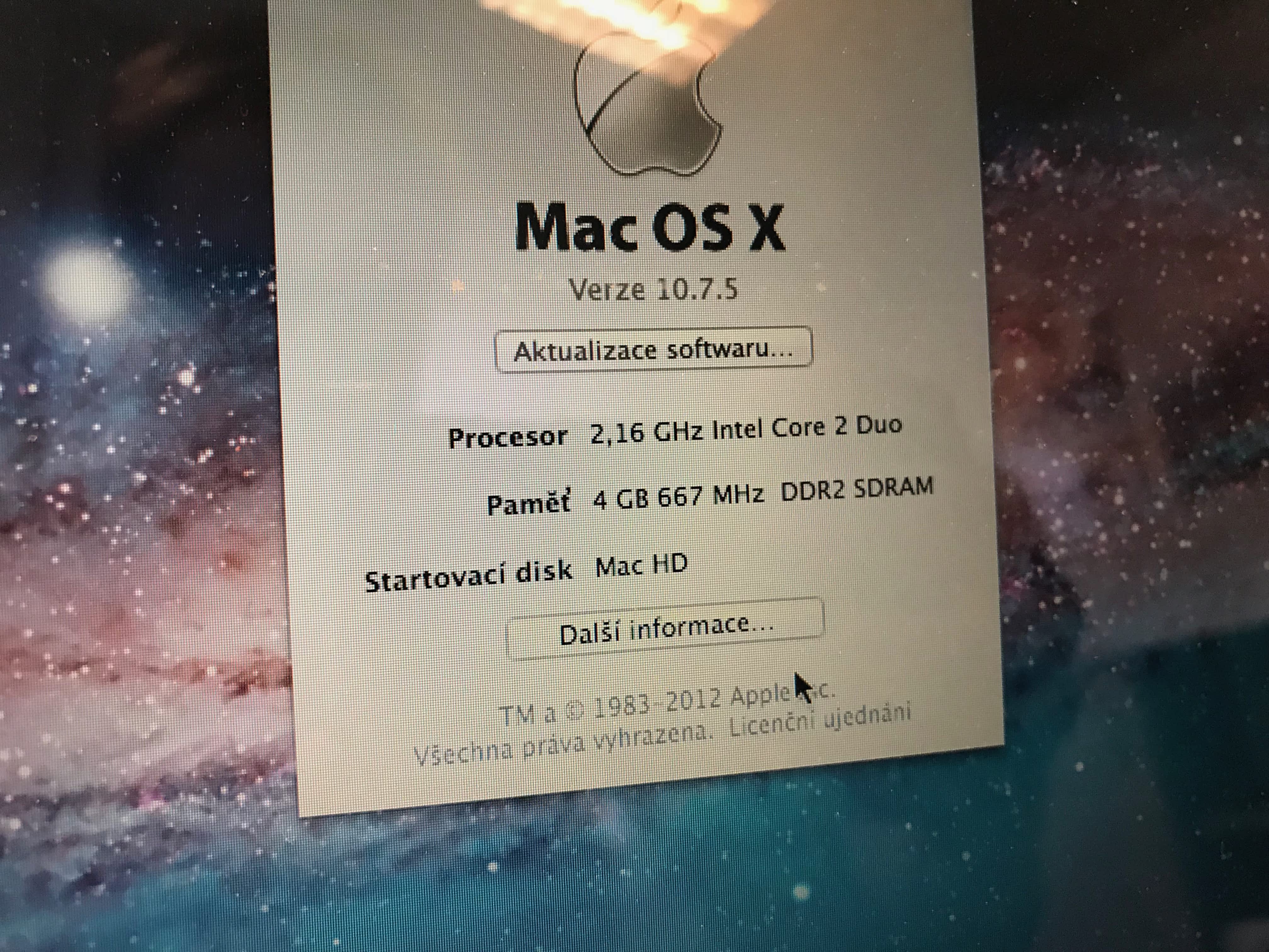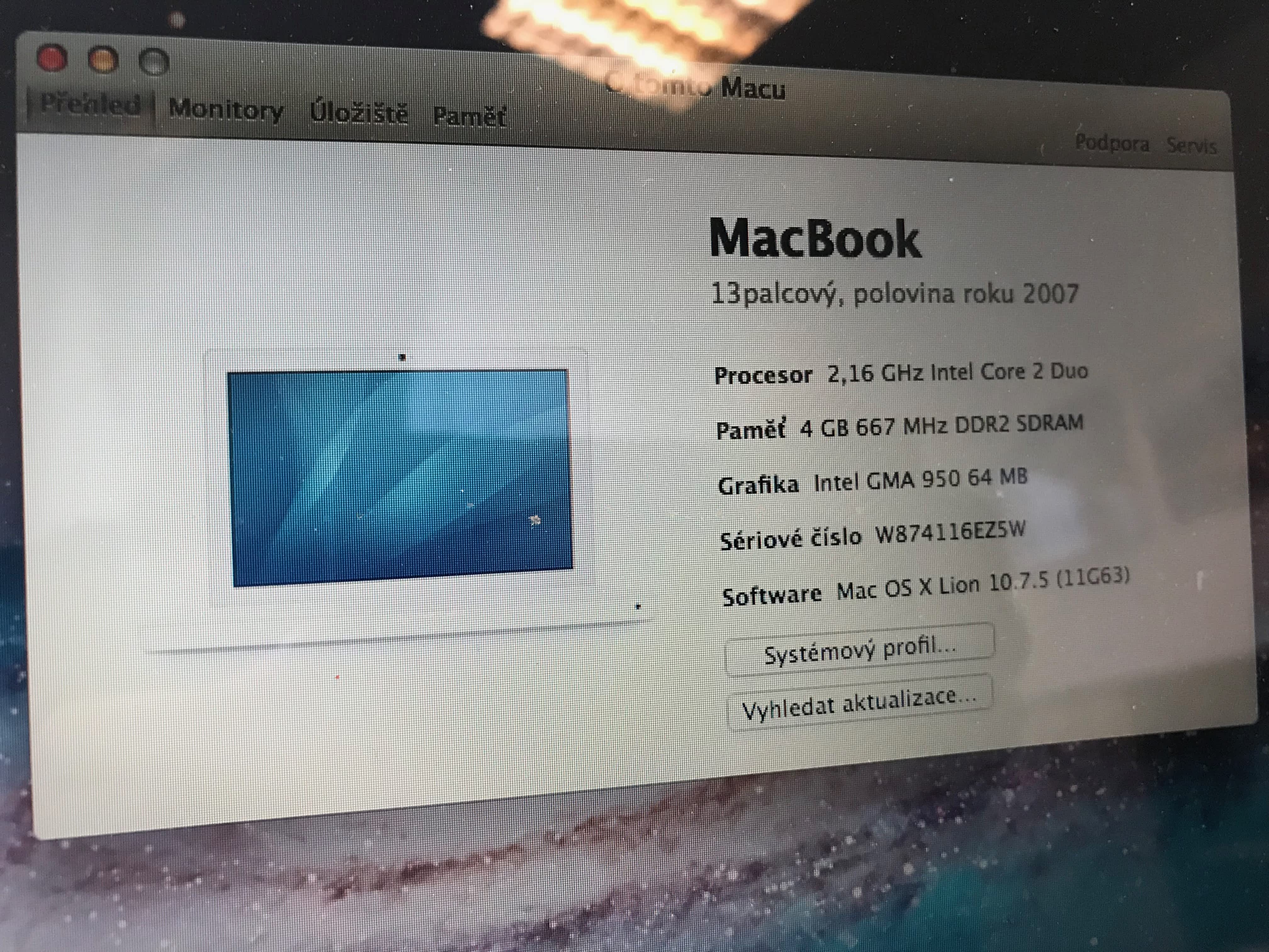 Prodám starší Macbook Black, plně funkční s novou neoriginální baterií (7 cyklů). Má klasické kosmetické vady – olámané okraje krytu s klávesnicí, touchpad je už ošoupaný.