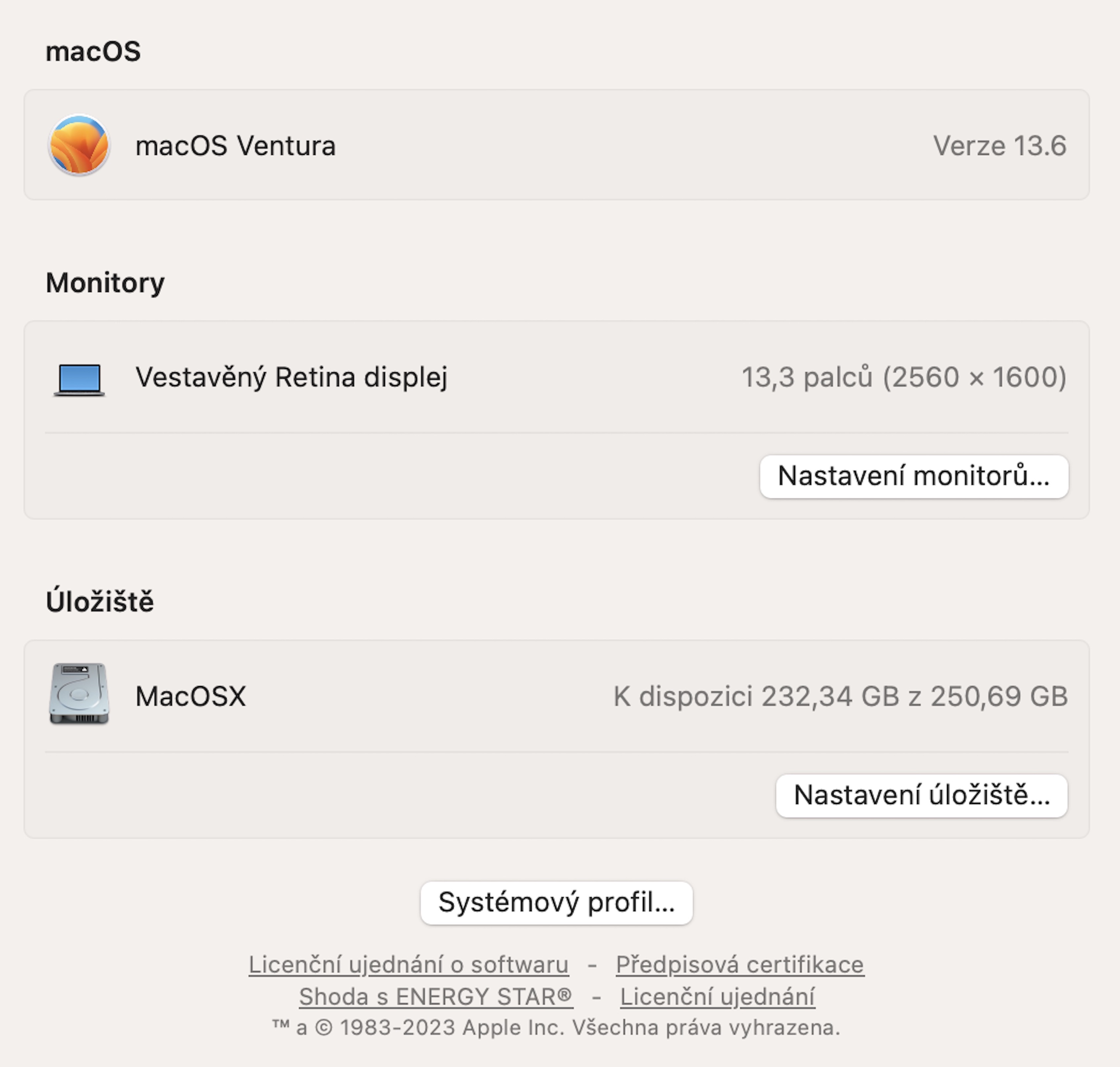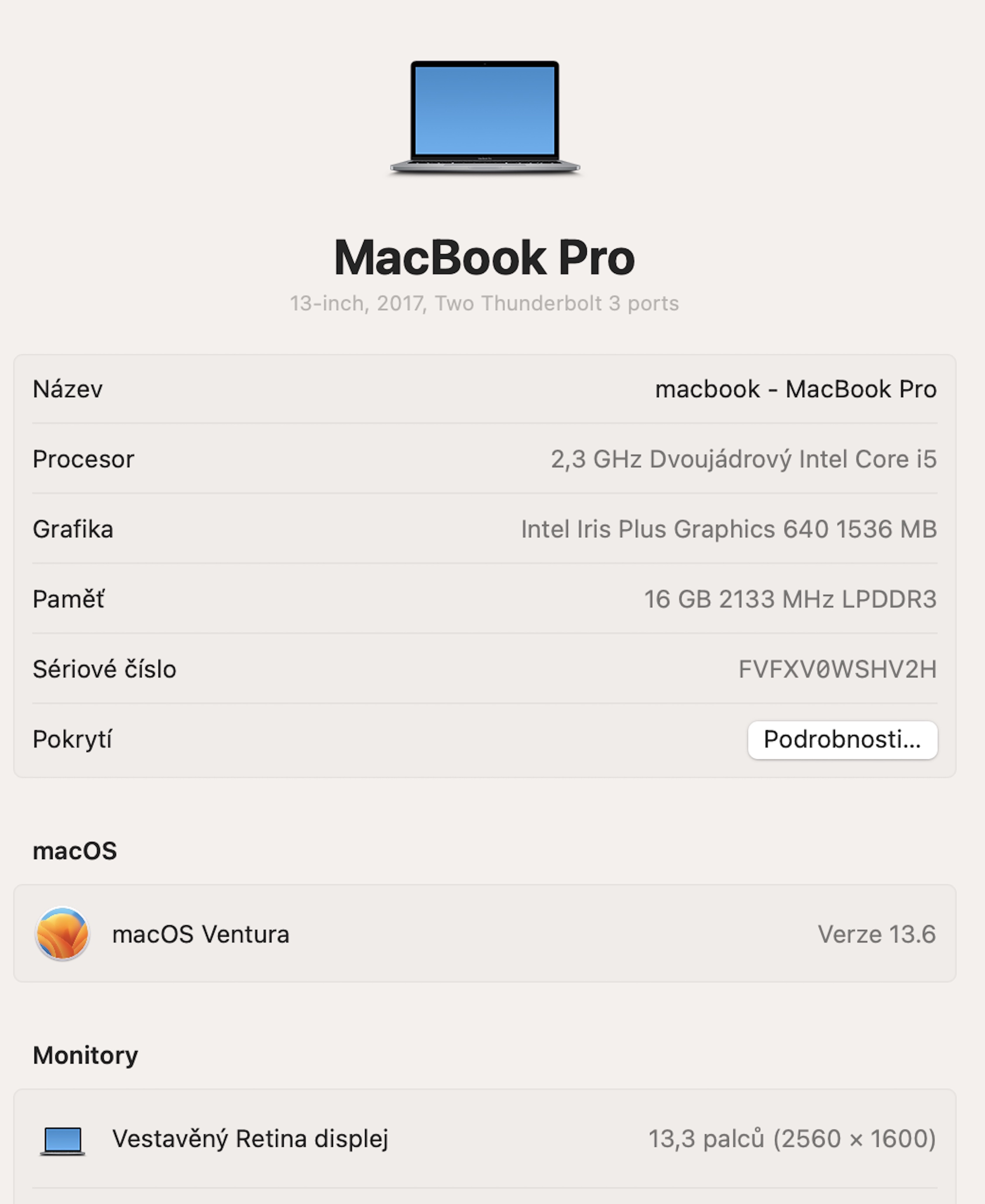 Procesor: 2.3GHz dvoujádrový Intel Core i5