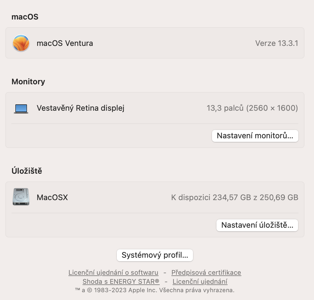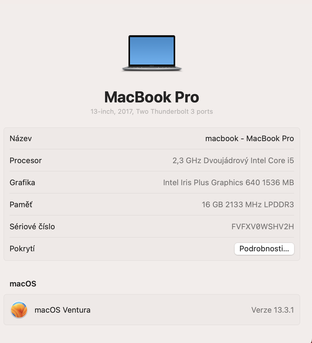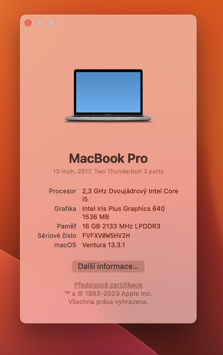 Procesor: 2,3GHz Dvoujádrový Intel Core i5