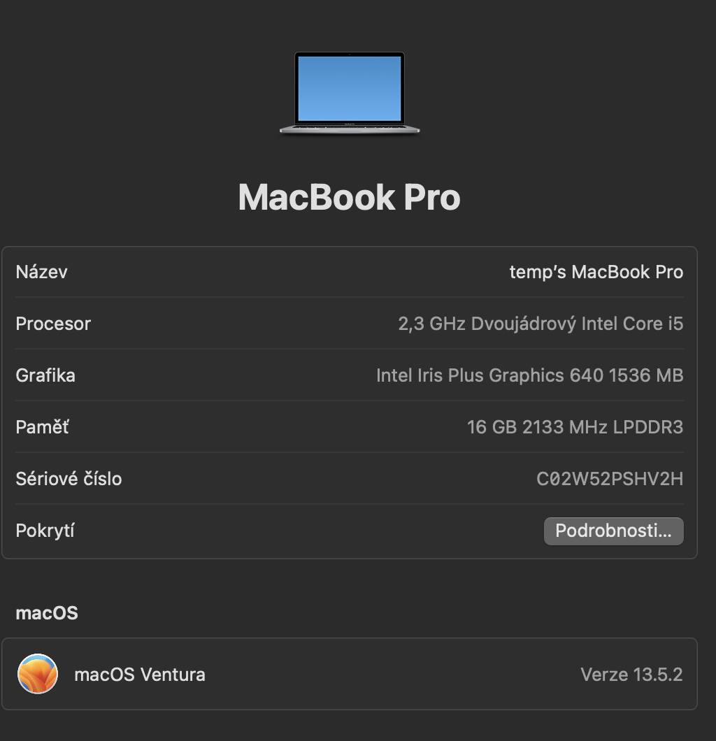 Procesor: 2.3GHz dvoujádrový Intel Core i5