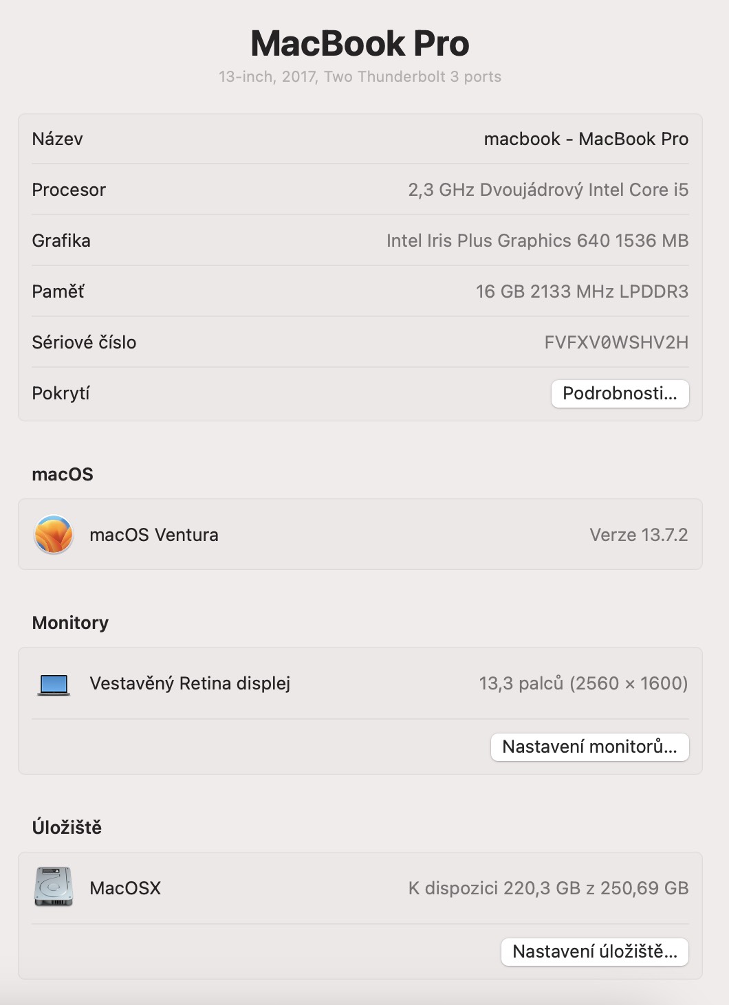 Procesor: 2.3GHz dvoujádrový Intel Core i5