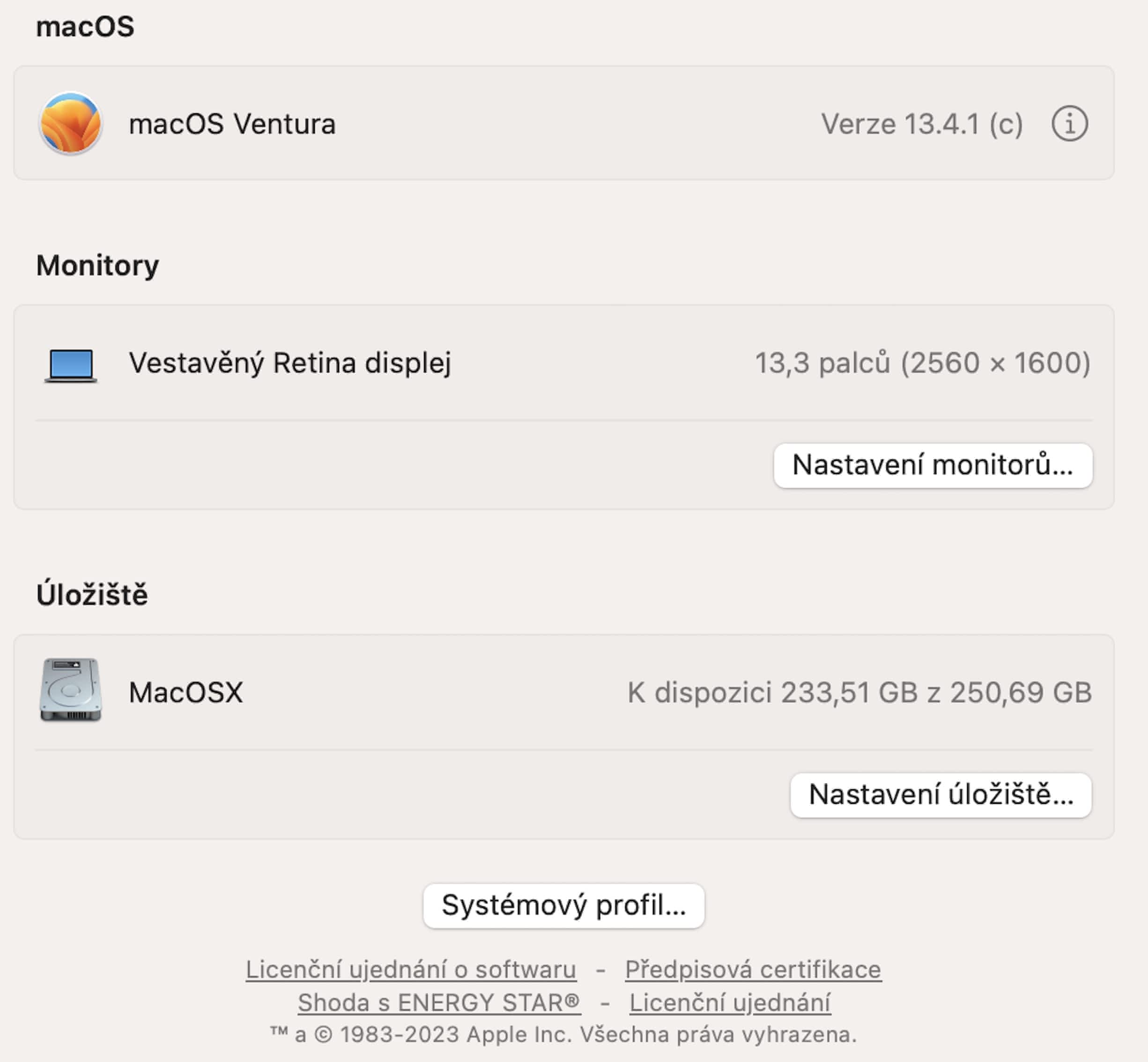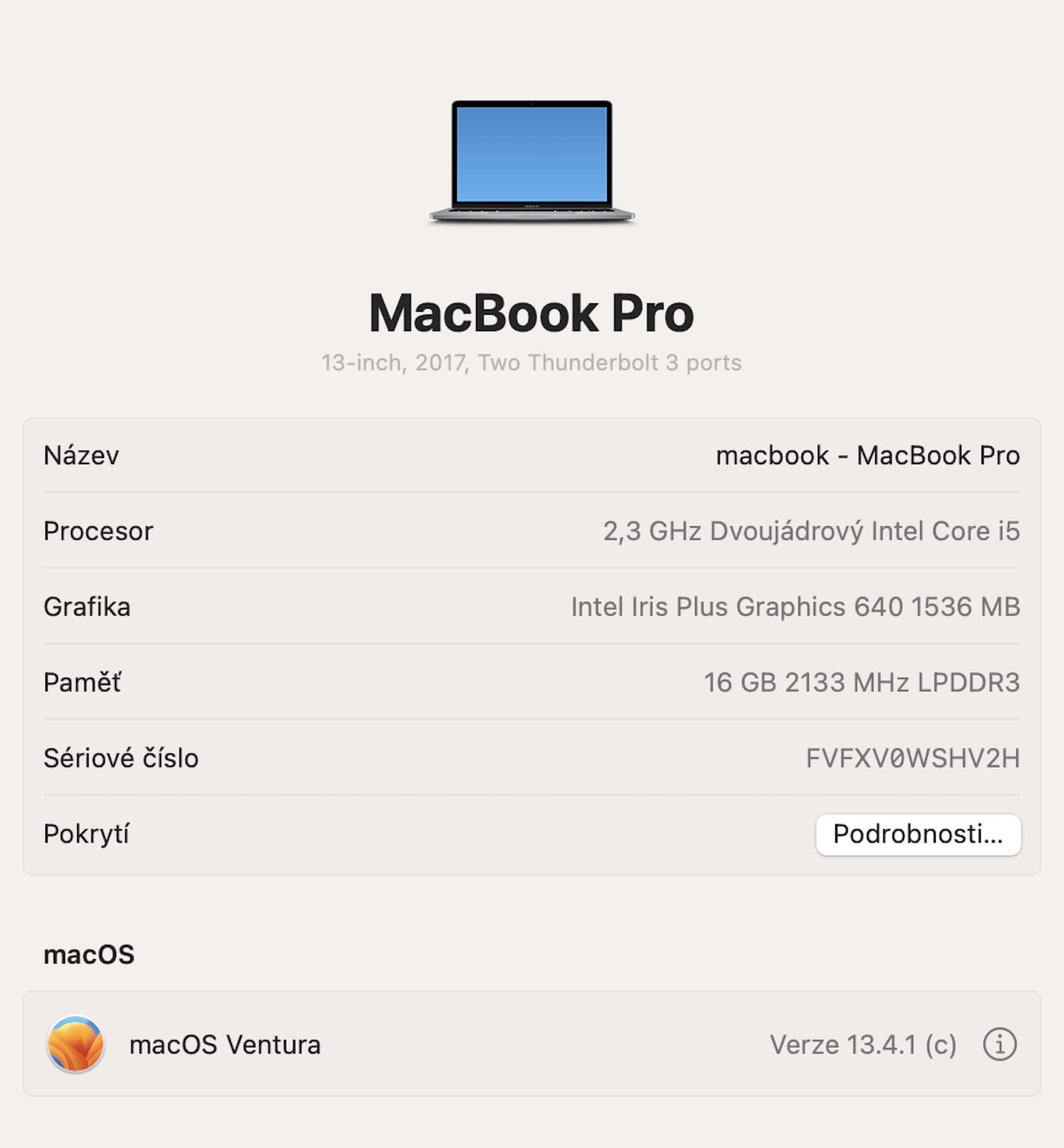 Procesor: 2.3GHz dvoujádrový Intel Core i5