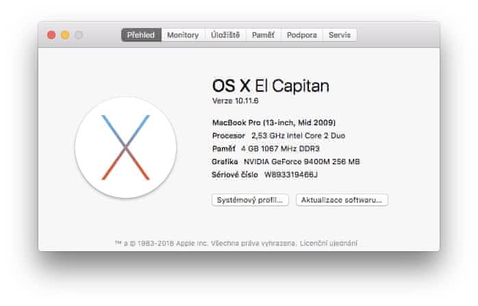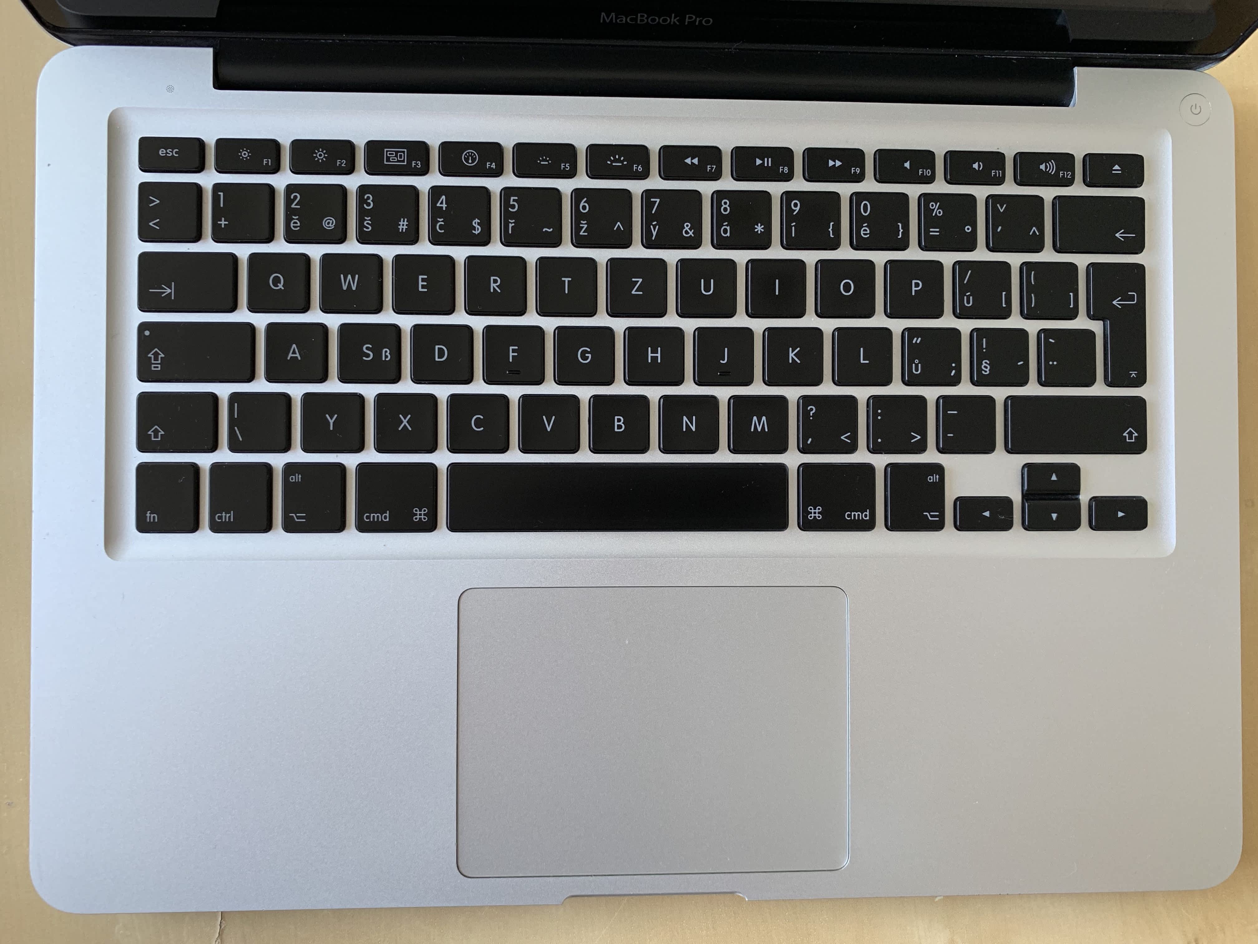 Prodám Apple MacBook Pro (13,3", mid 2009), 4 GB RAM, 250 GB HDD. Jedná se o model z české distribuce -> klávesnice s českými znaky. Velmi pěkný stav, vše funkční. Slabší baterie – výdrž cca. hodina. Kompletní specifikace: https://support.apple.com/kb/SP541?locale=cs_CZ