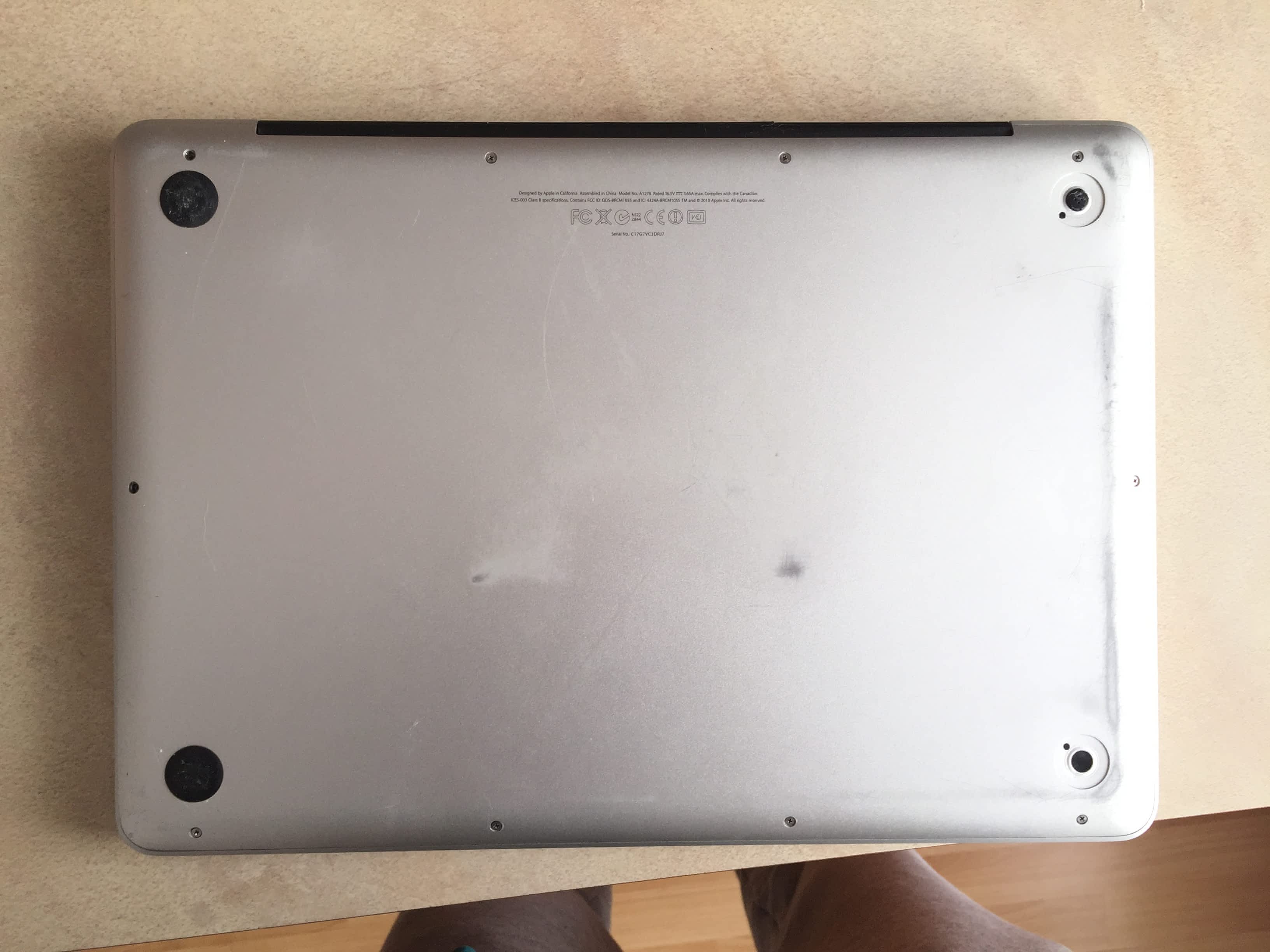 Stav: Zespoda je poškrábaný od stolu a chybí mu 2 gumové podložky (dají se dokoupit zde v ČR za 200 Kč). Mírná promáčklina na víku displeje a levá klávesa command je mírně odřená. Žádné mrtvé pixely na displeji, žádné škrábance na displeji ani žádné velké škrábance na těle macbooku.