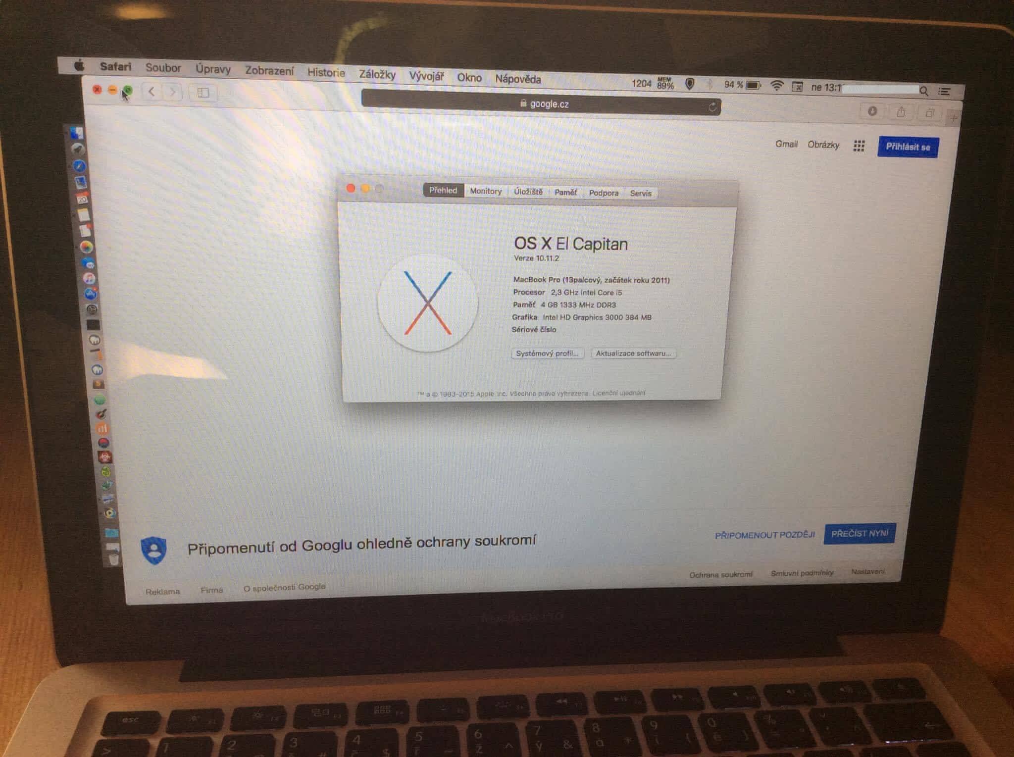 2x USB 2.0, audiokonektor, Magsafe, FireWire 800 port, LAN RJ-45, čtečka SDXC karet, DVD mechanika,