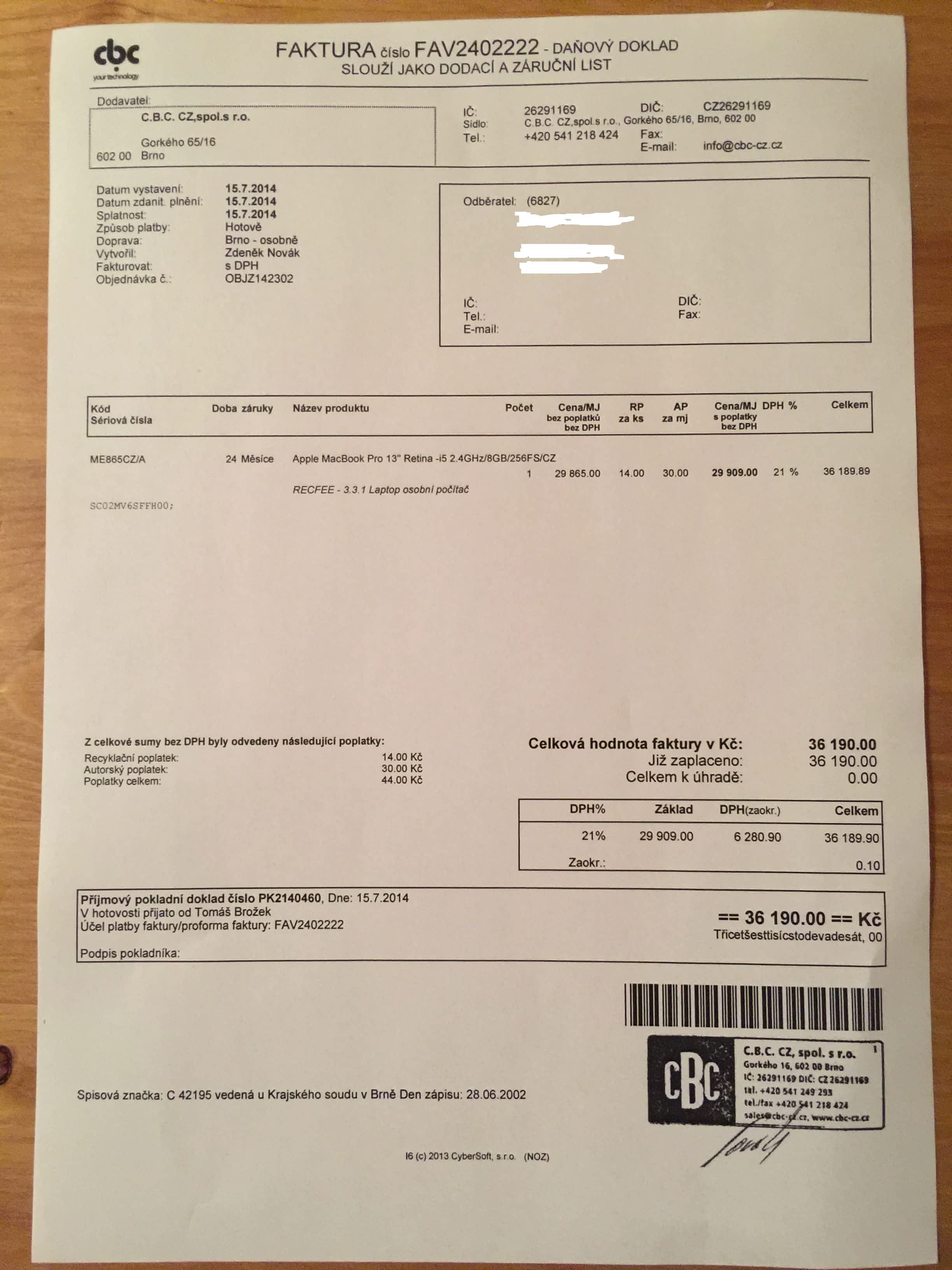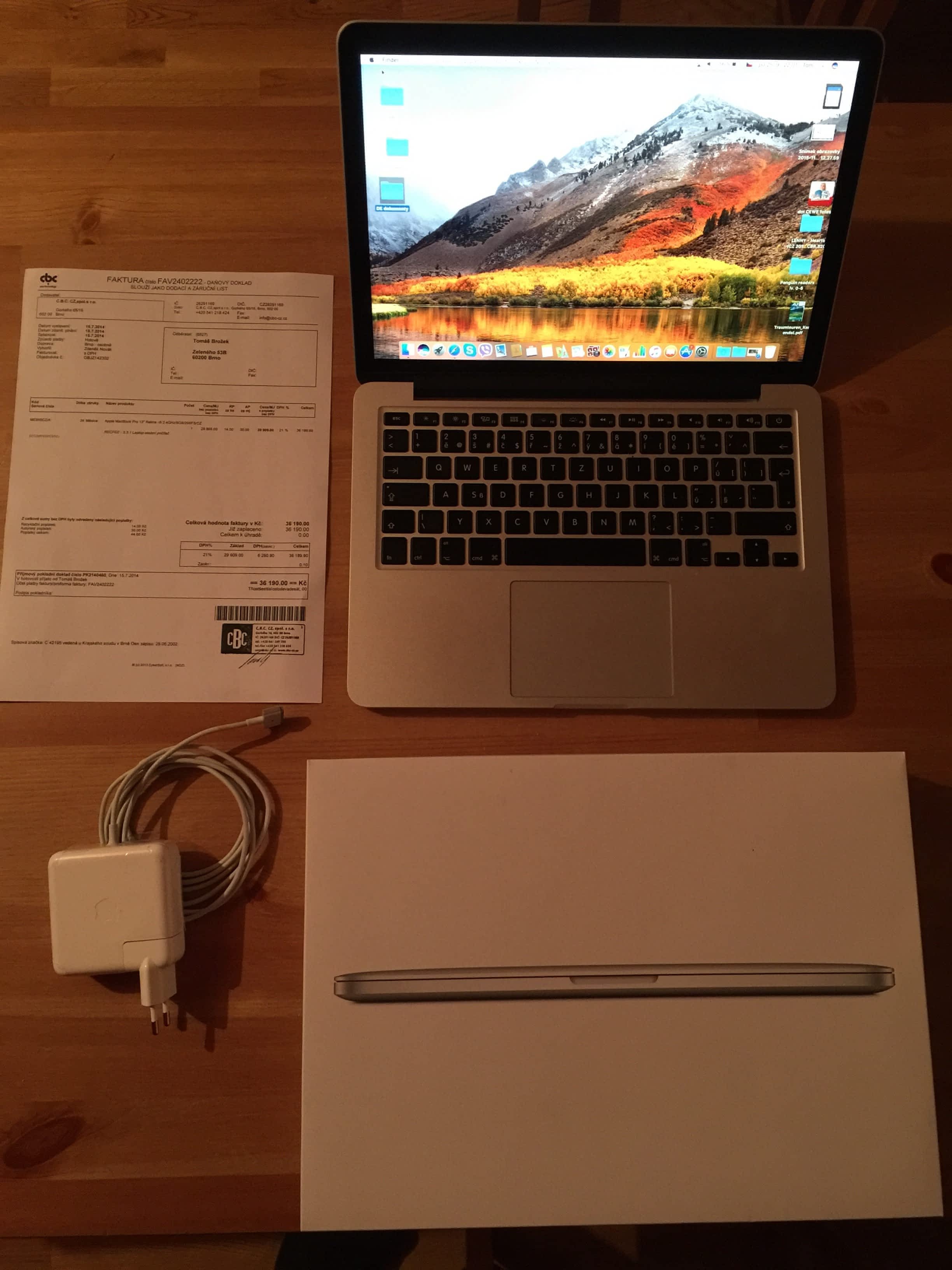 Zdravím, nabízím k prodeji svůj MBP 13" 2013 s retinou, 256GB, 8GB RAM. Mac je ve 100% stavu bez známek používání. Je po záruce viz foto o koupi . K Macu je veškeré originální příslušenství s krabicí. Baterie ma 517 cyklů. Nikdy s ním nebyl sebemenší problém. Dále přídávám adaptér pro Scan dis kartu pro zvětšení kapacity a samotnou kartu Scandisk o kapacitě 200Gb. Jakékoliv dotazy rád zodpovím.
