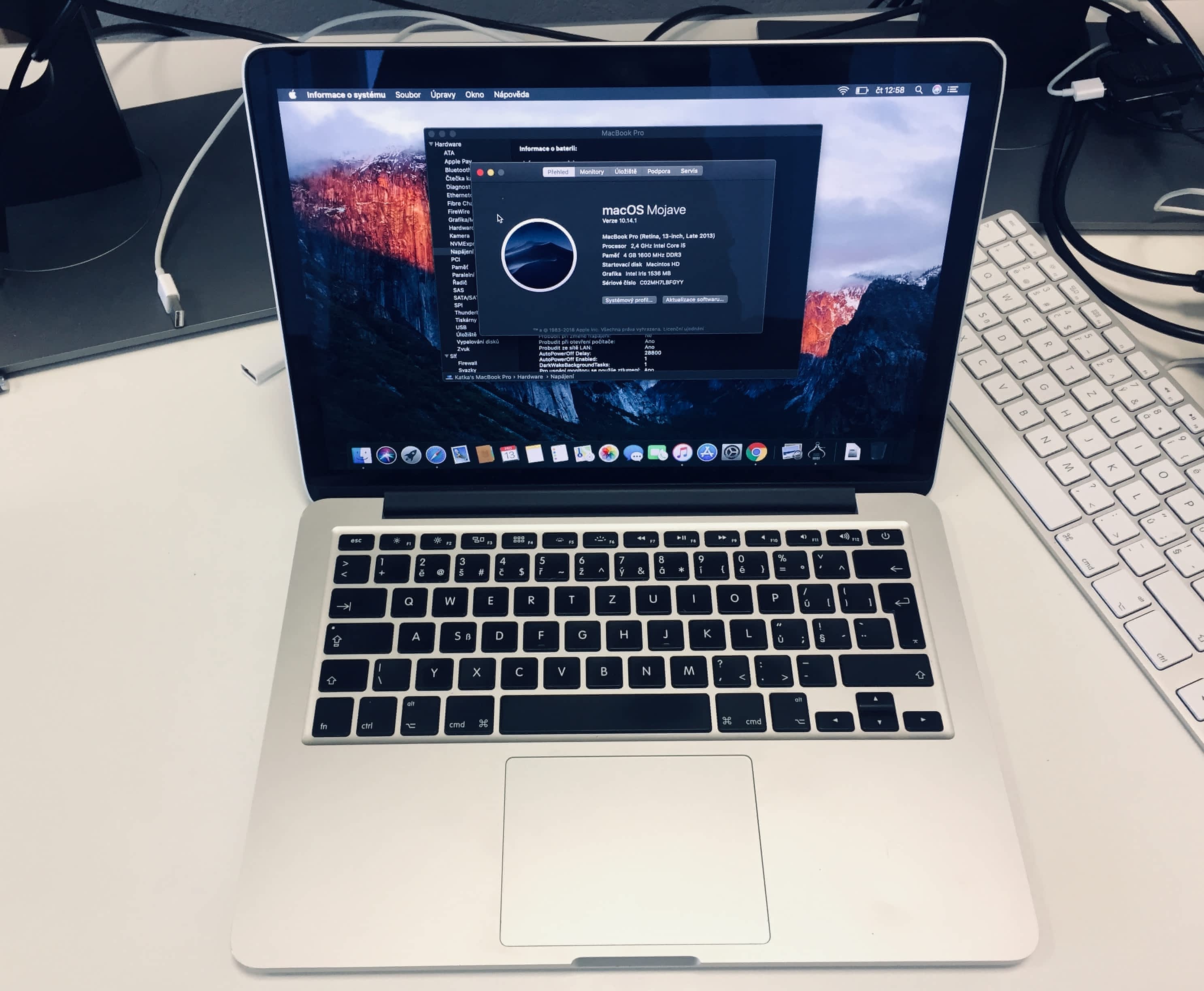 Prodám 100 % funkční Macbook Pro 13 (2013 Late), který má výraznější oděrky viz. fotky, jinak na displeji, klávesnici zachovalý.