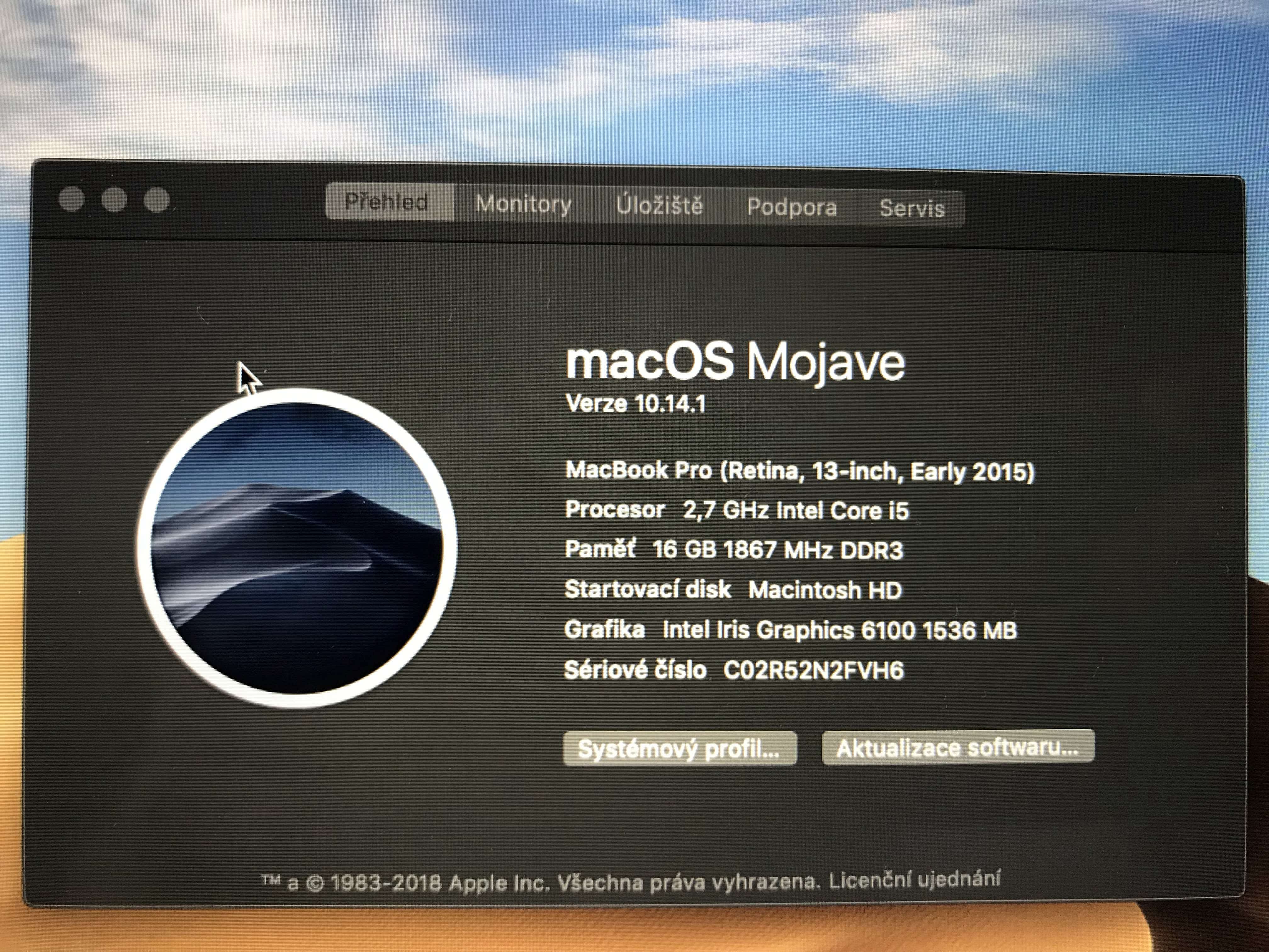 Macbook má jednu malinkou chybičku kde to vypadá ťuklé (Na rohu při zavřeném macbooku jak je svitící jabličko) + minimálně opotřebované gumy zespoda. Jakoukoliv dodatečnou fotku případně dodám.