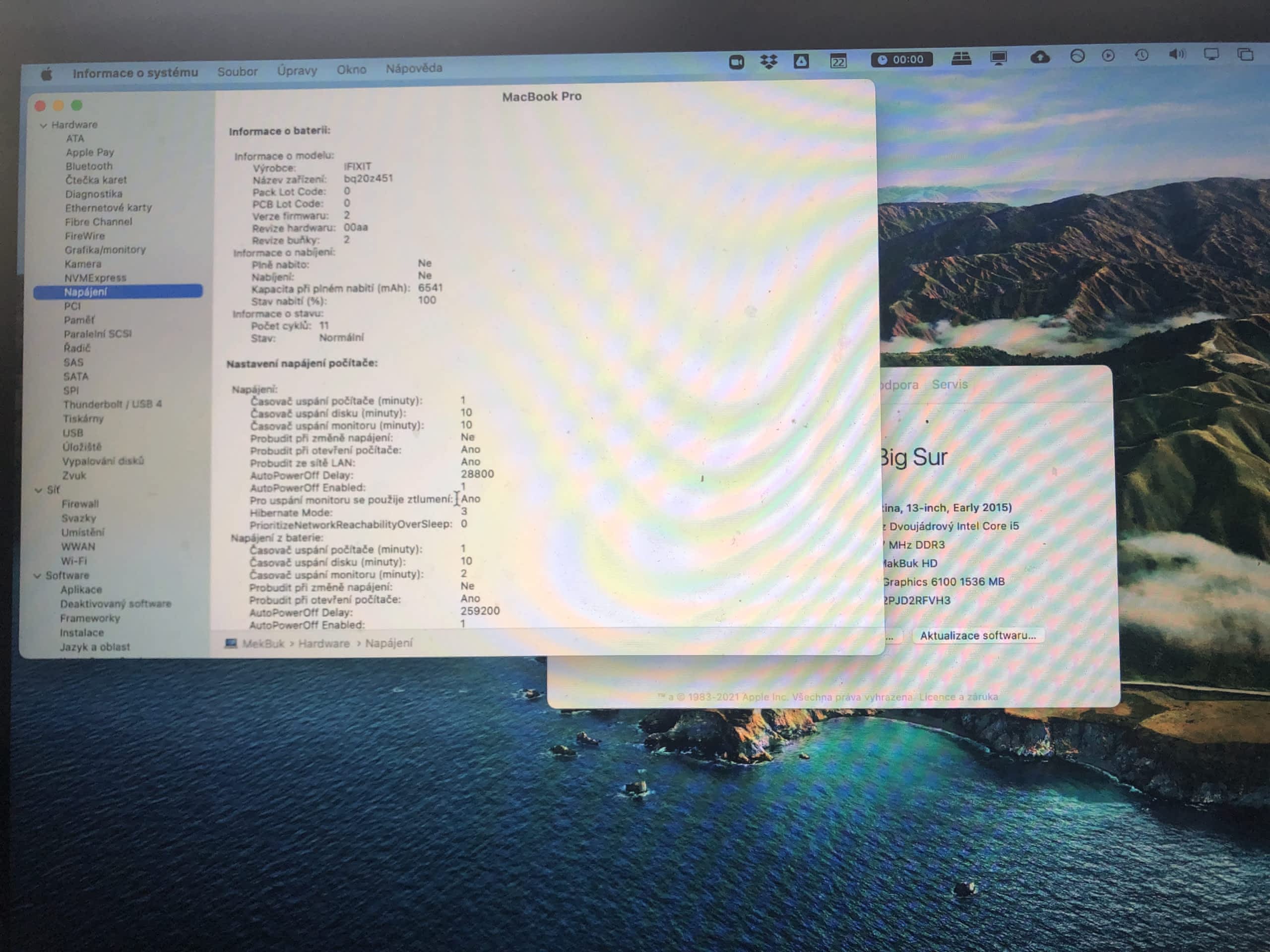 V roce 2017 výměna víka a displaye (vrámci záruky), v roce 2020 upgrade SSD a v roce 2021 nová baterie – zatím má jen 11 cyklů (viz foto – stav ke dni 22.2.2021).