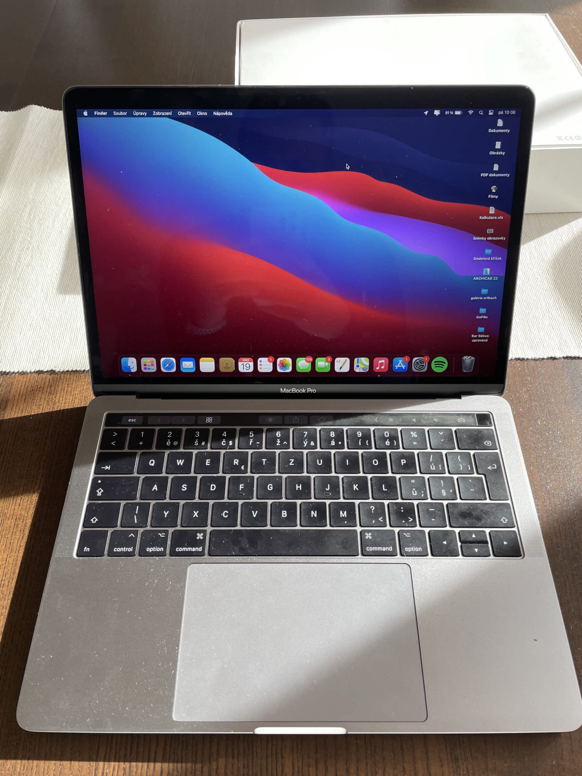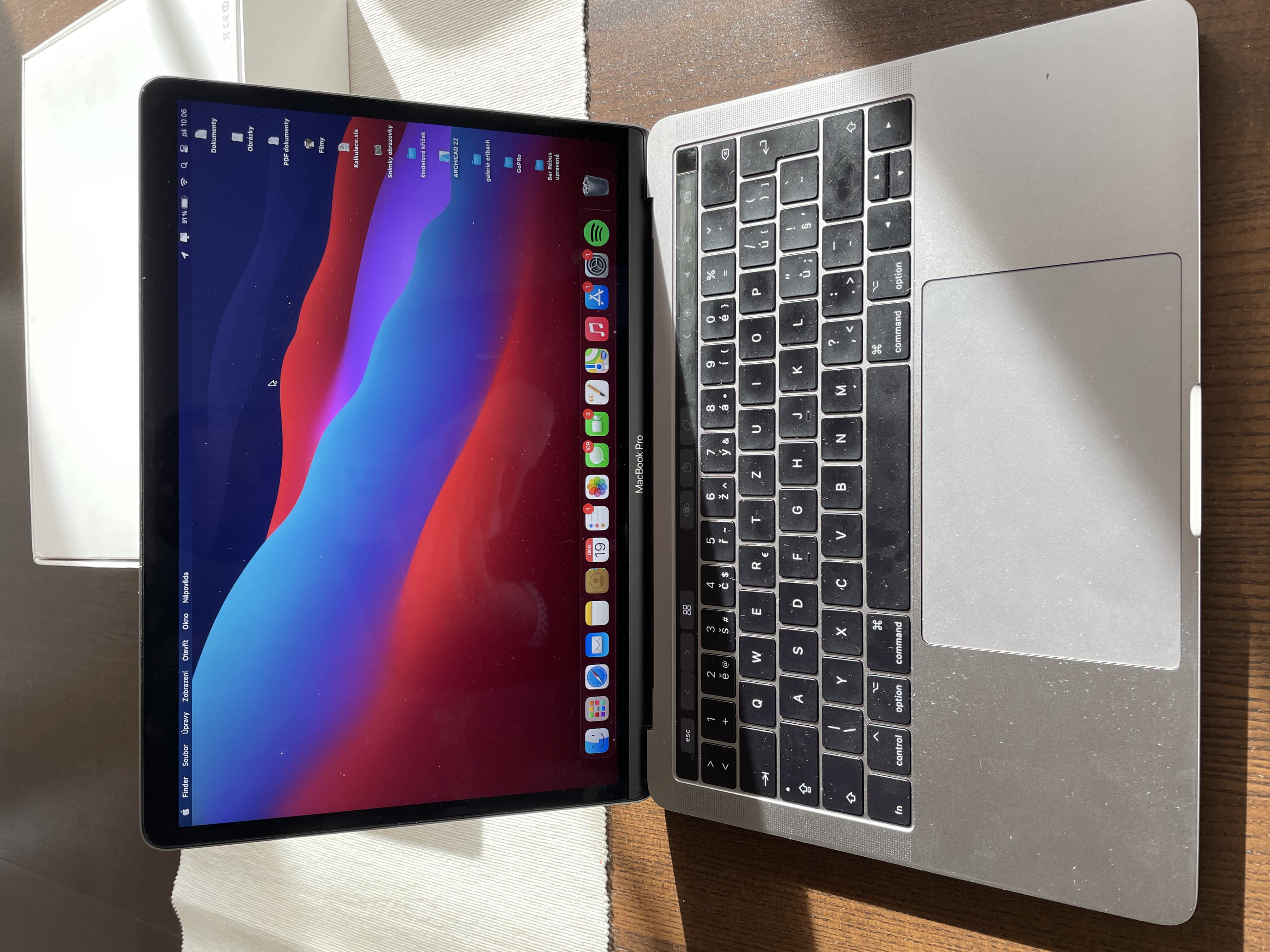 Prodám Macbook Pro 13" s Touchbarem. Rok 2016, stav bez škrábanců a viditelného poškození ( vždy přenášen v obalu a tašce ). V roce 2020 měněna v autorizovaném servisu baterie, počet cyklů 23. Používán jako záložní počítač. Balení kompletní s originál krabicí. Sestava dle fotek.