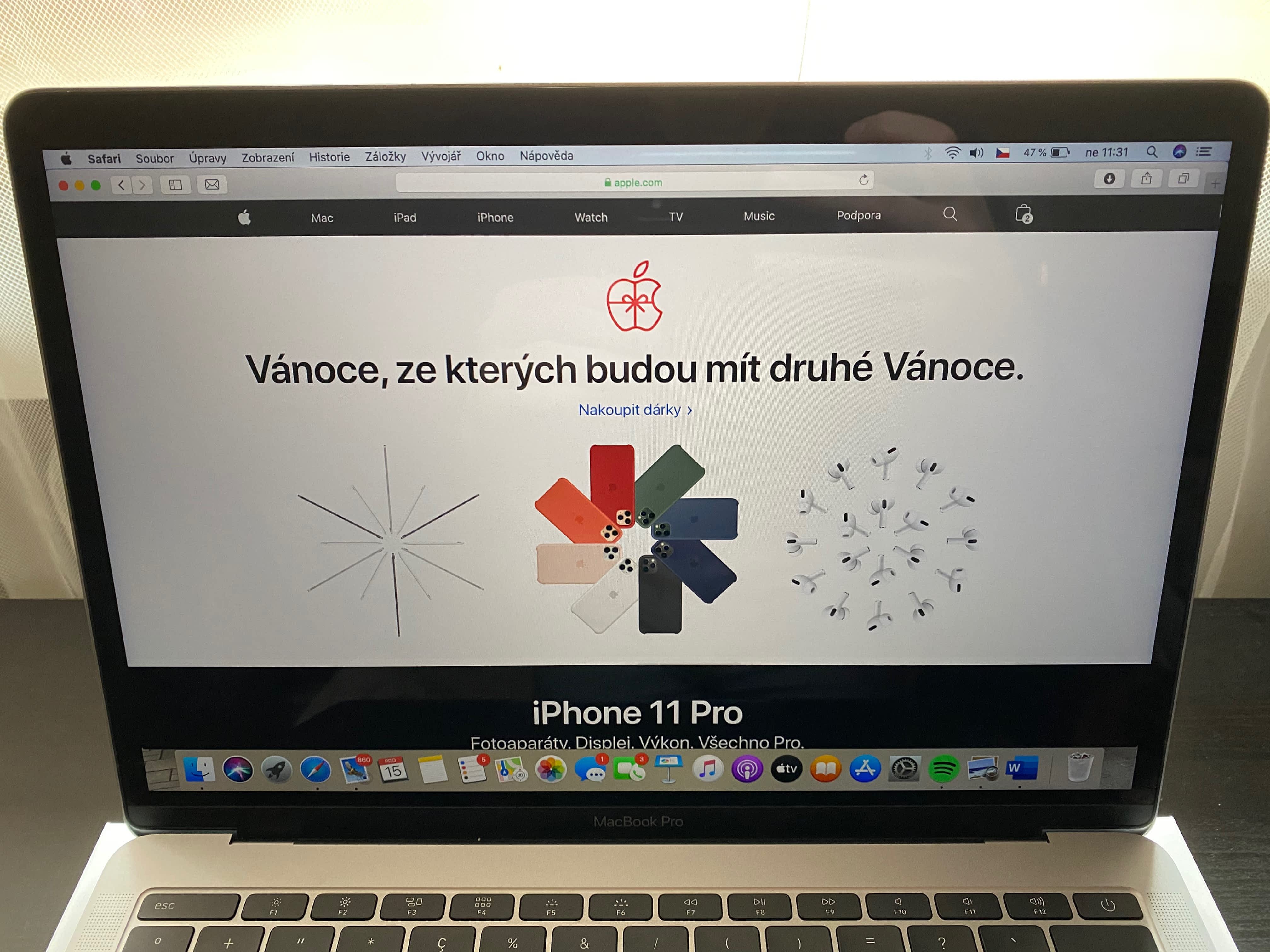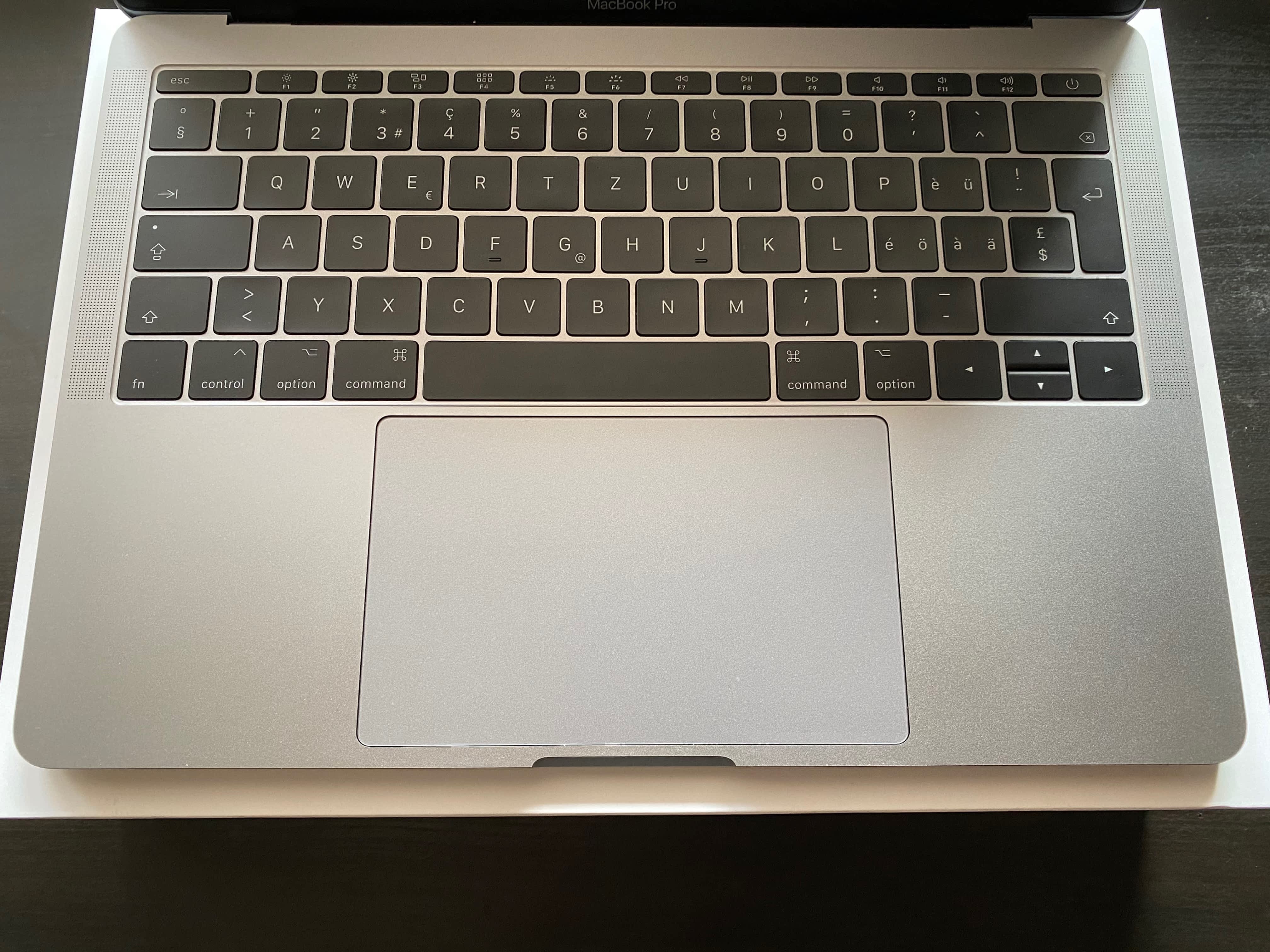 Intel Core i5 2,3 GHz, 8 GB LPDDR3, Intel Iris Plus Graphics 640, 128 GB SSD, 2x USB-C Thunderbolt 3 port, Retina displej 2560 x 1600 bodů atd. (modelové číslo: MPXQ2CZ/A). Koupeno ve Švýcarsku, takže nemá českou klávesnici, ovšem při používání to problém nedělá, popř. lze dokoupit folii s českými znaky.