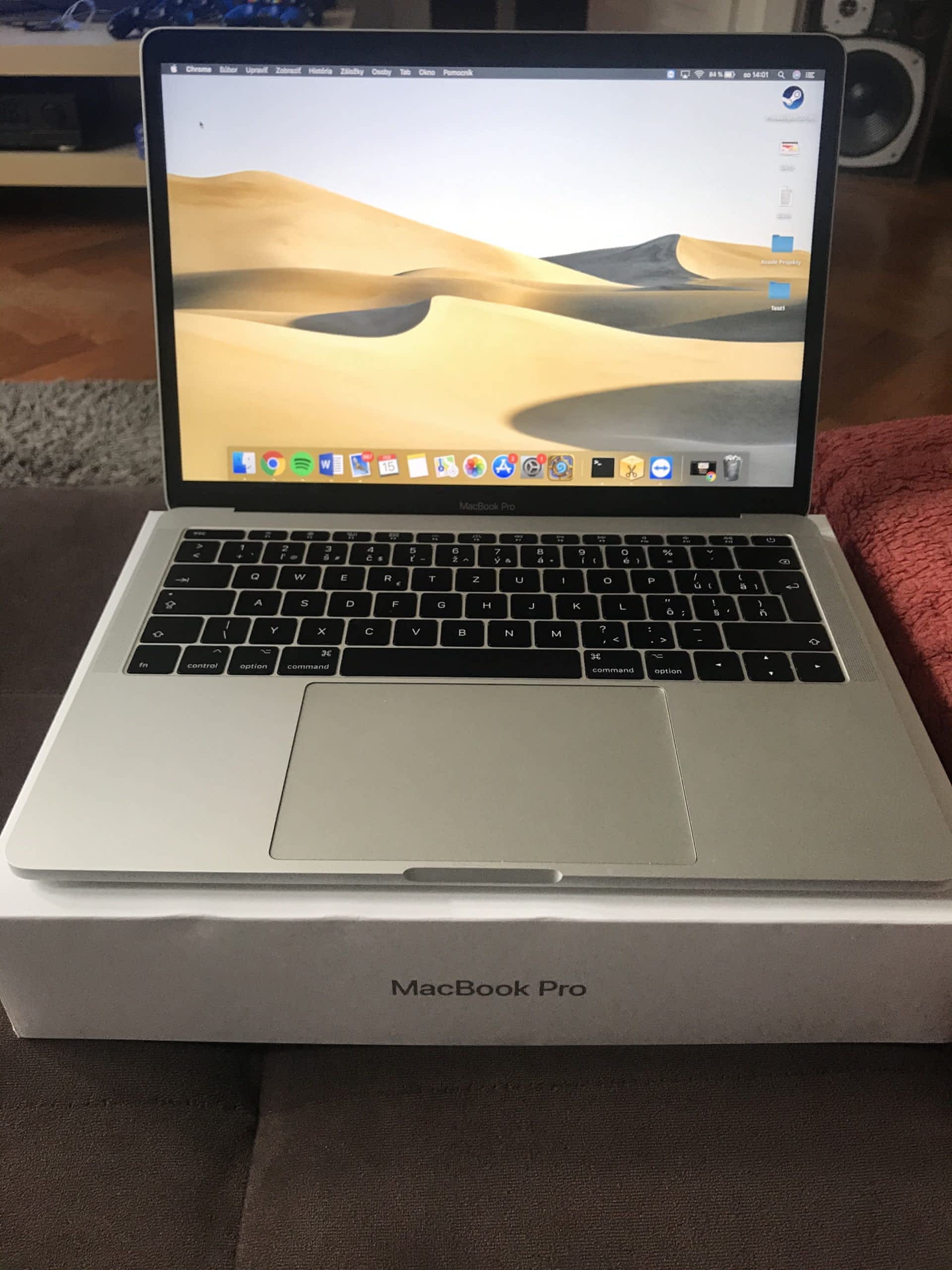 Predávam veľmi málo používany MacBook pro 13" z roku 2017 striebornej farby kupovaný na Alza.sk dňa 29.6.2018 so zárukou na dva roky. Notebook má 84 cyklov nabitia a nemá na sebe žiadne znaky opotrebenia ani poškodenia. Dôvod predaja je, že som dostal nový služobný notebook.