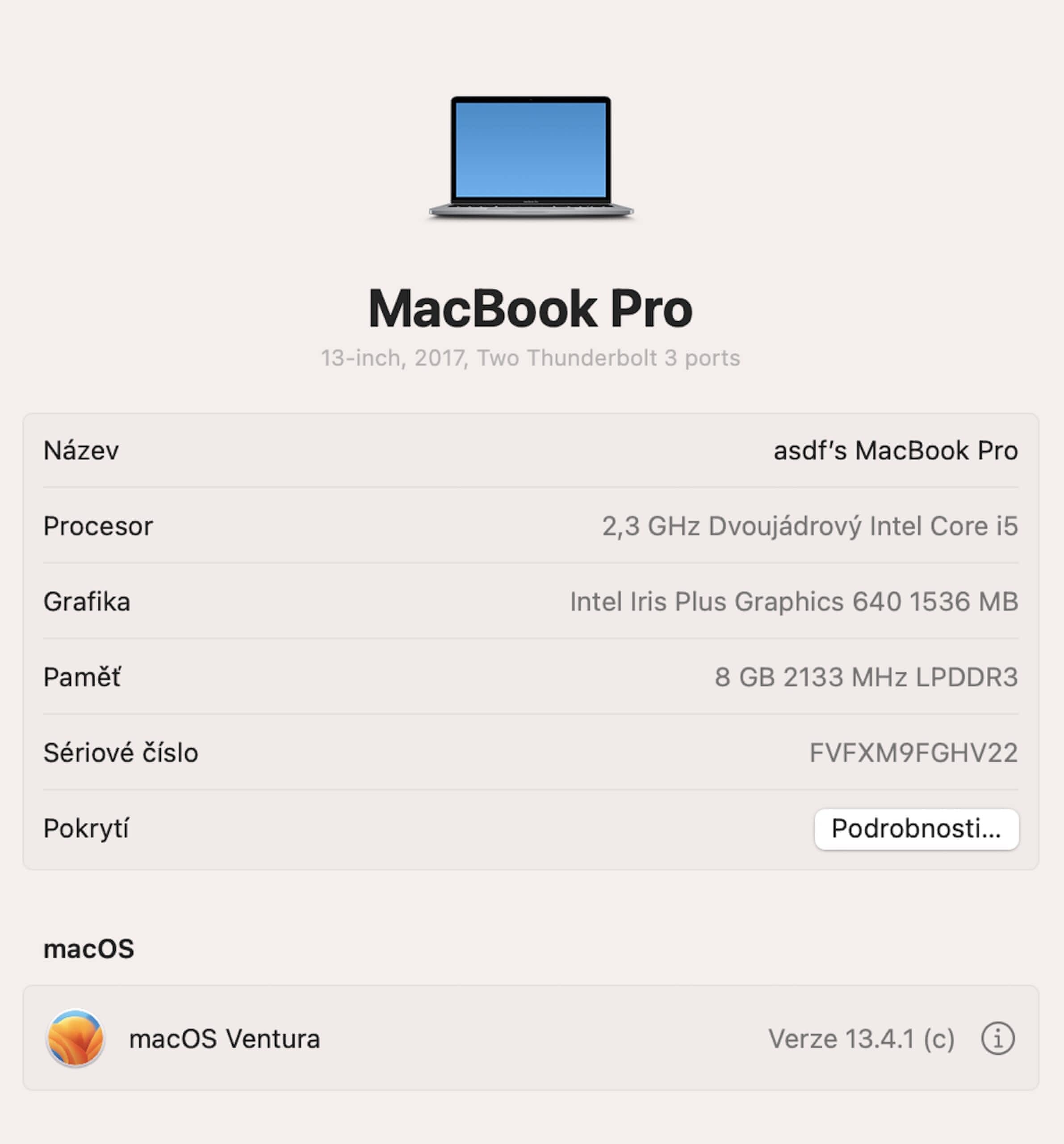 Procesor: 2.3GHz dvoujádrový Intel Core i5