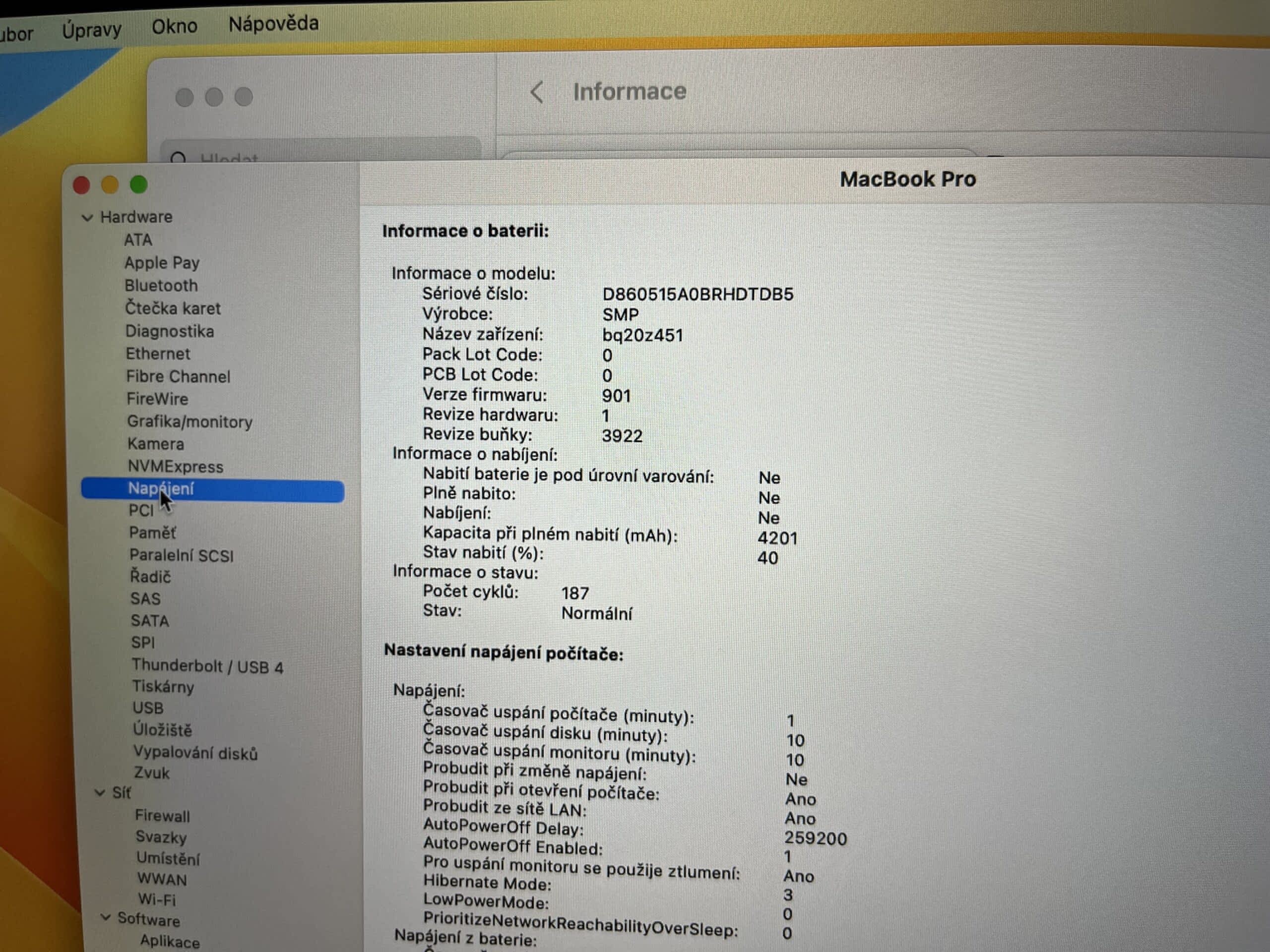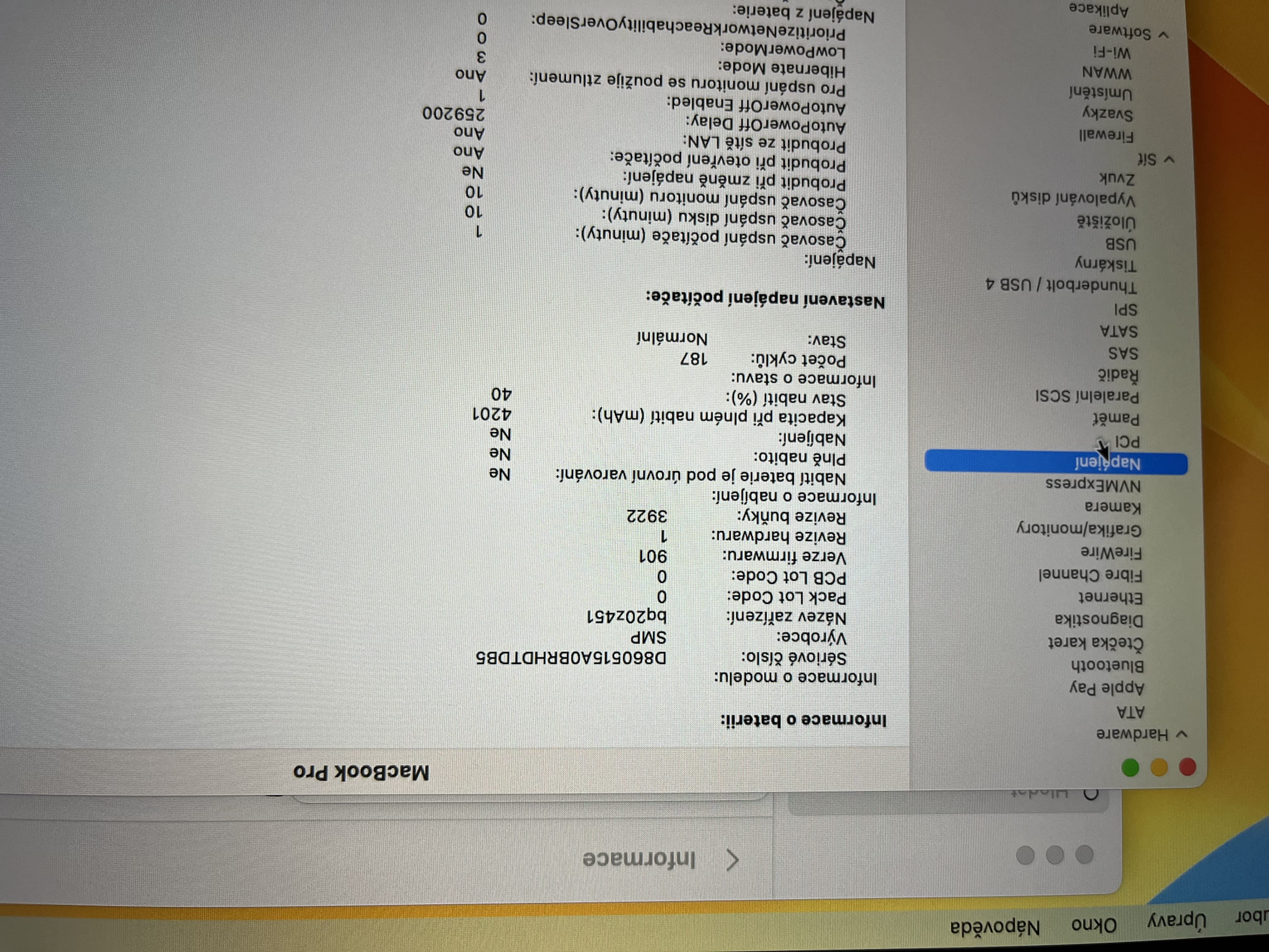 Baterie má aktuálně pouhých 186 cyklů (tj. úplné nabití a vybití). Displej nemá ŽÁDNÝ škrábanec, ani žádný otlak od klávesnice. Blbě se to fotí, kvůli odleskům.