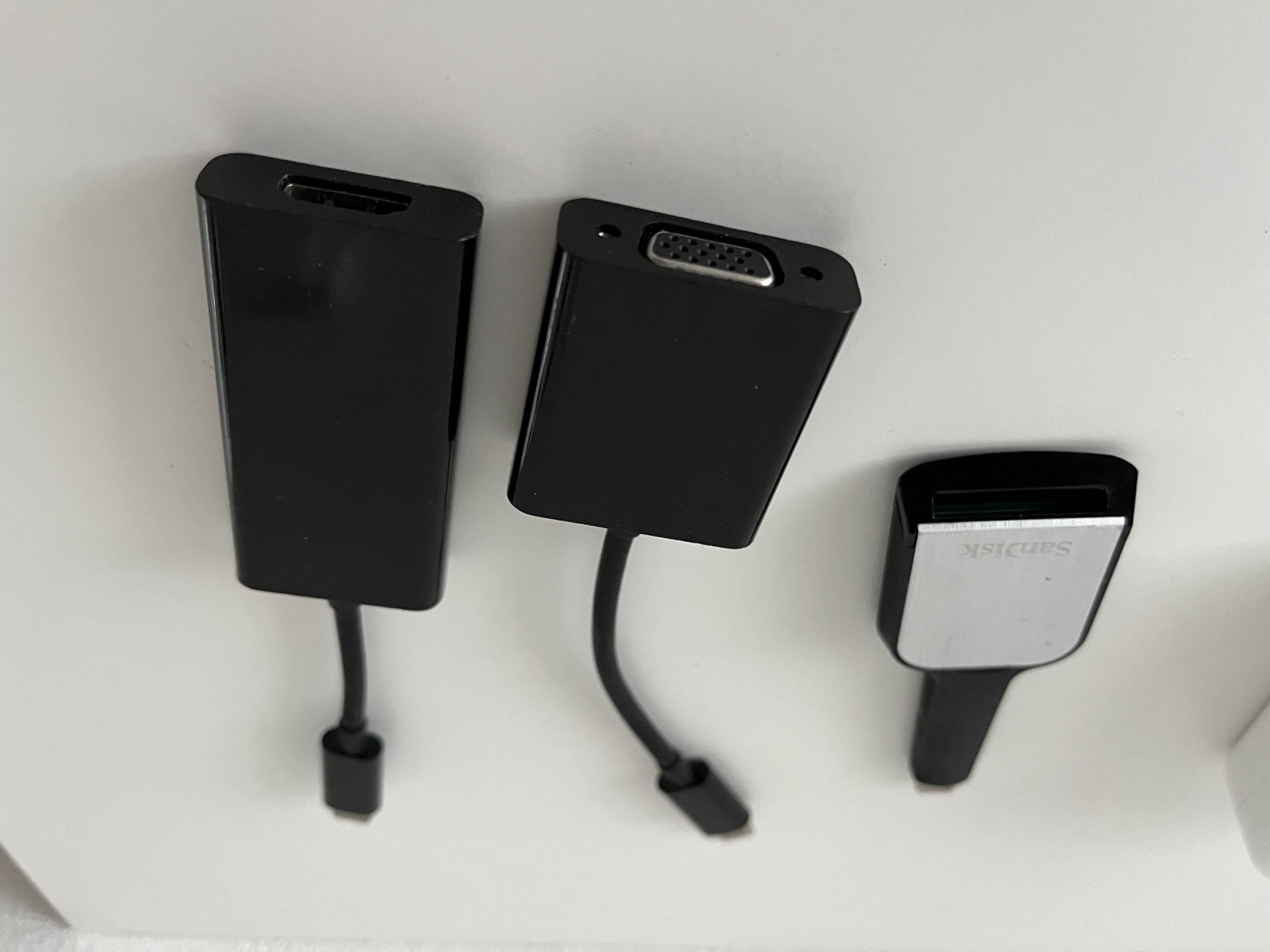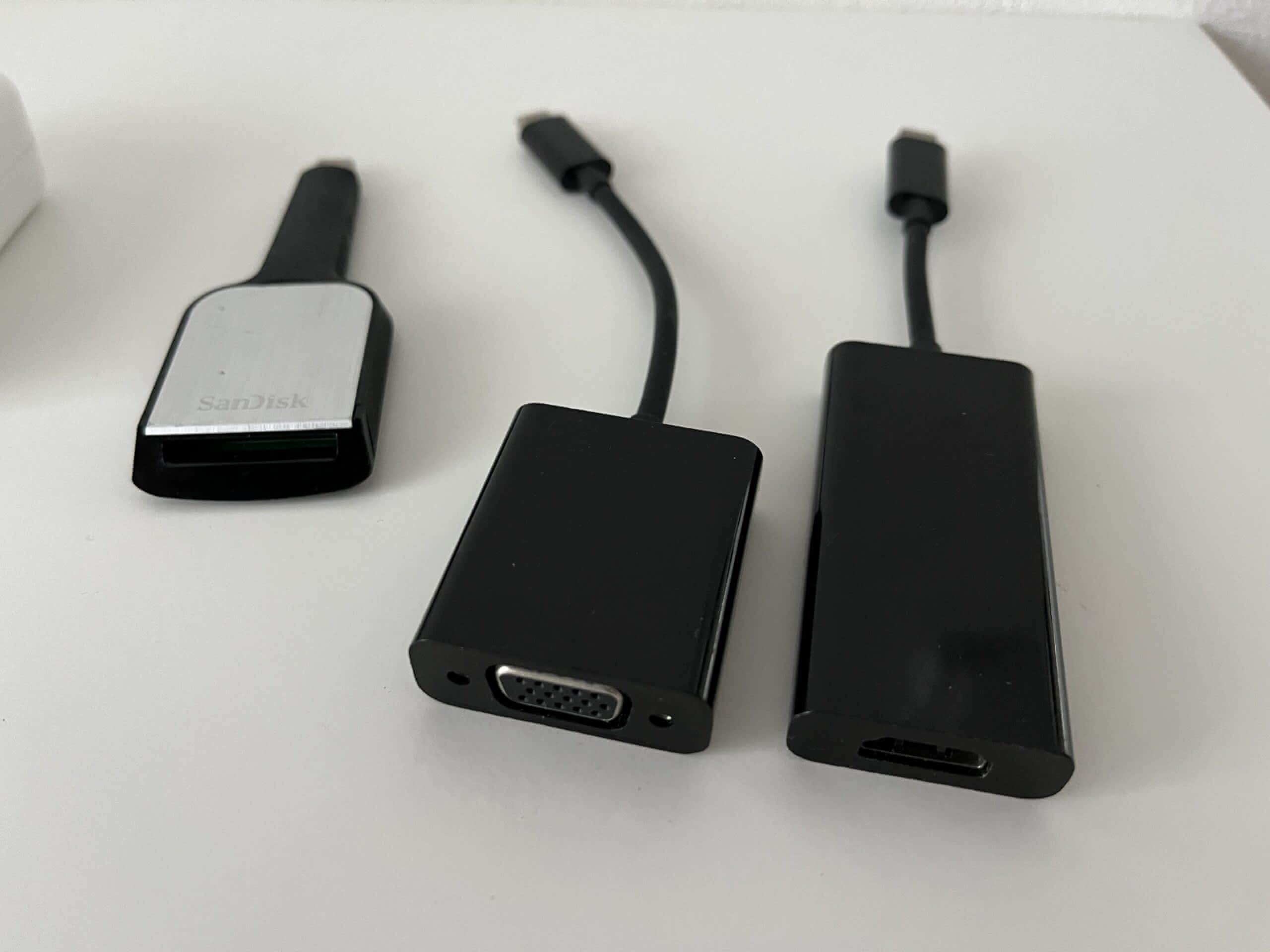 Přidávám zdarma redukce USB-C SD (Sandisk), USB-C HDMI (Belkin) a USB-C VGA (Belkin).