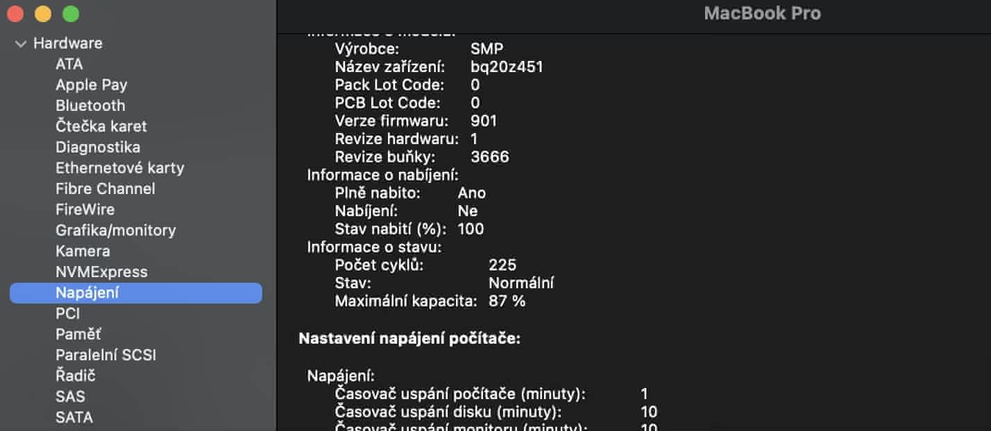 -87% maximální kapacita baterie
