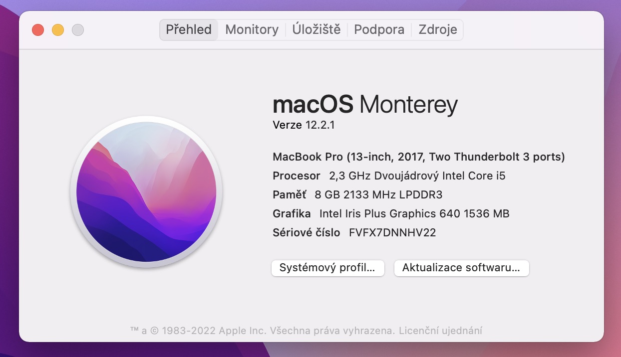 Procesor: 2,3 GHz Dvoujádrový Intel Core i5