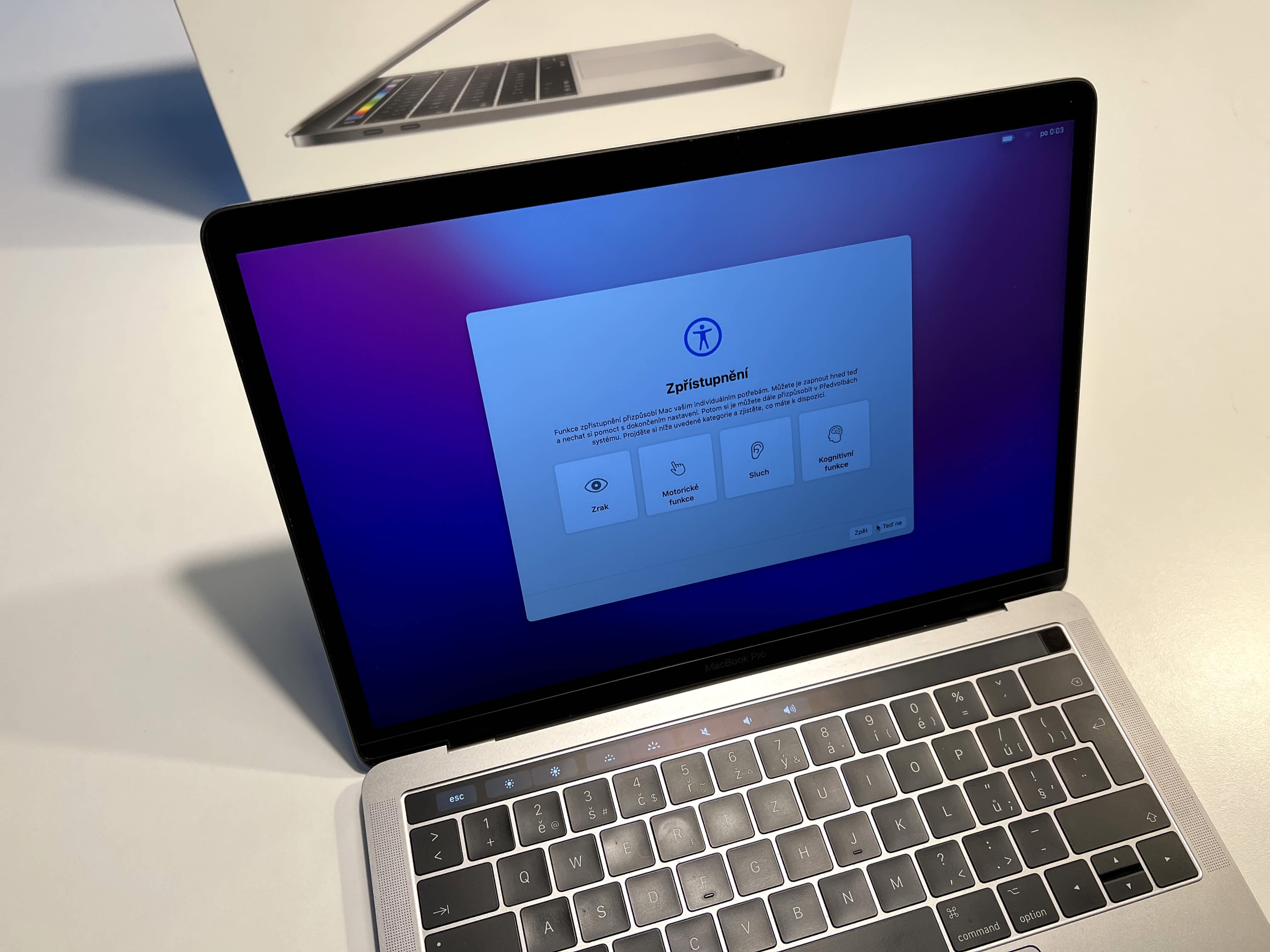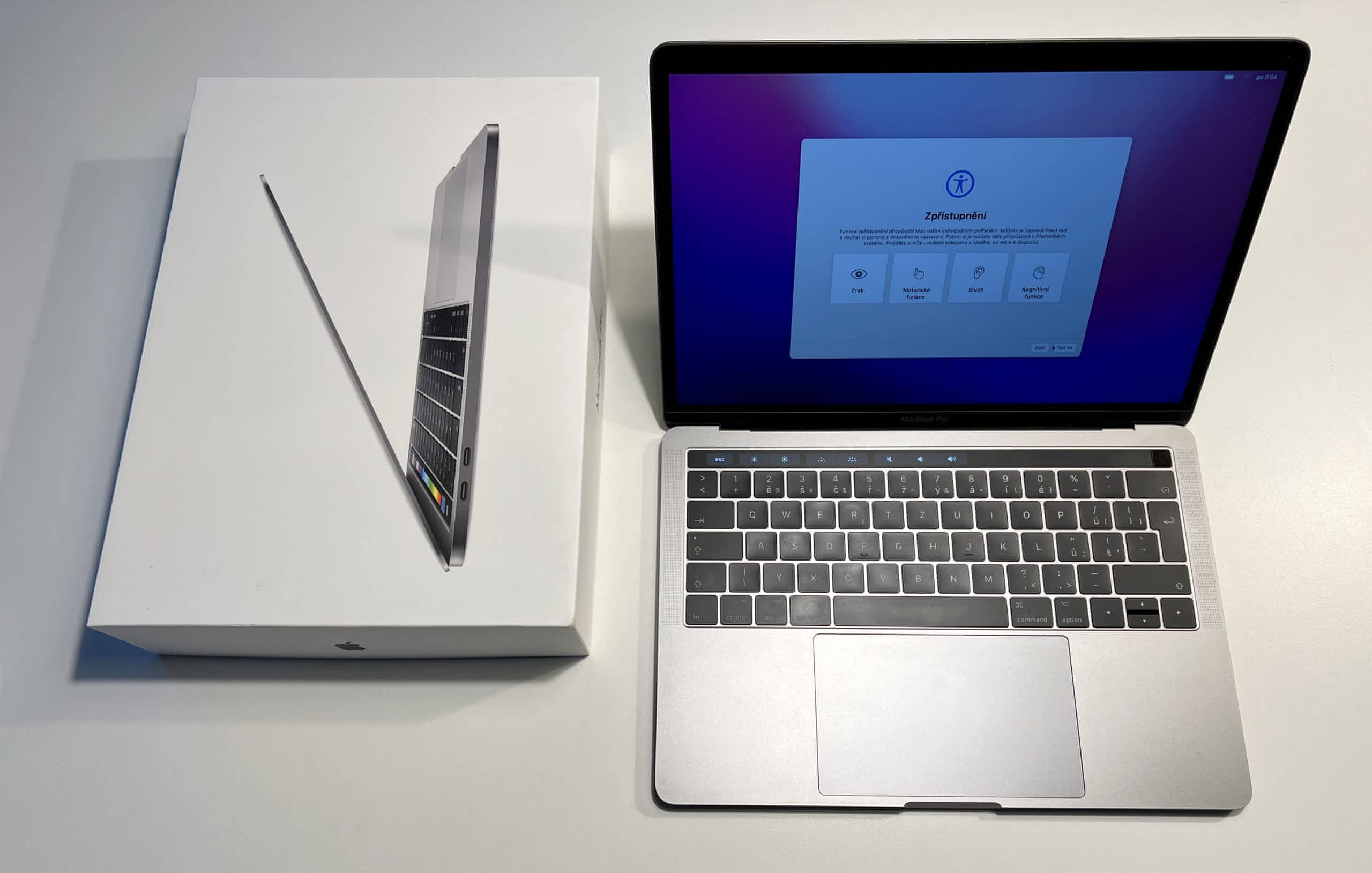 Prodáme MacBook Pro 13" Touch Bar/DC i5 3.1GHz/8GB/256GB SSD/Intel Iris Plus Graphics 650/Space Grey/CZ KB. Perfektní stav nového zařízení – kompletní balení s krabicí, používán minimálně jen jako záložní stroj, baterie prakticky nepoužívaná. Možnost odpočtu DPH. Cena bez DPH 14.545 Kč.