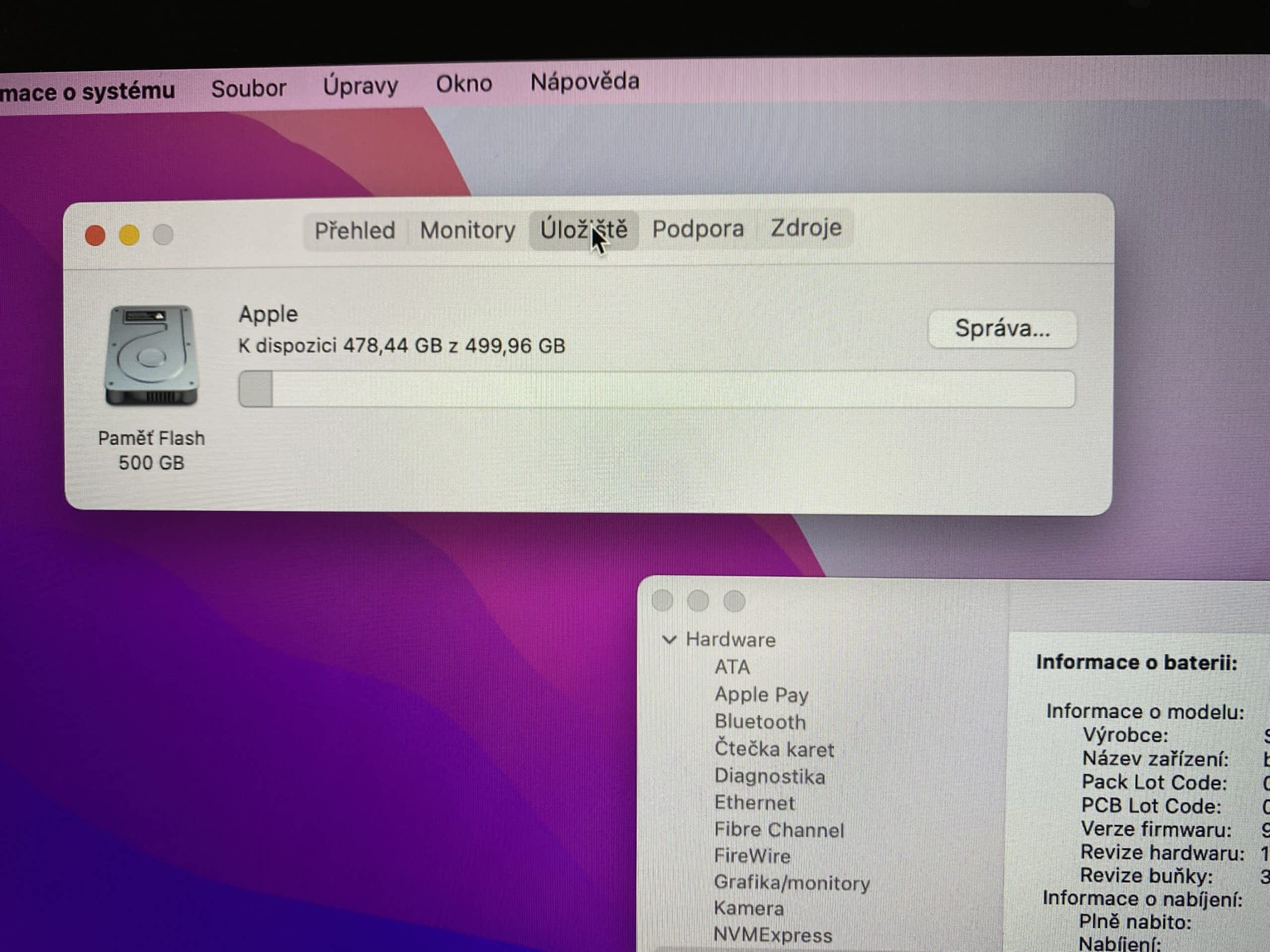 MacBook je plné funkční. Vše funguje jak má! Baterie má jen 205 cyklů.