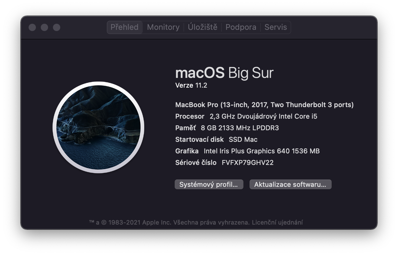 Prodám použitý MacBook Pro, 13 palců, Space Grey, model 2017, dva porty Thunderbolt 3, Intel Core i5 2,3 GHz, 128 GB SSD, 8 GB RAM.
