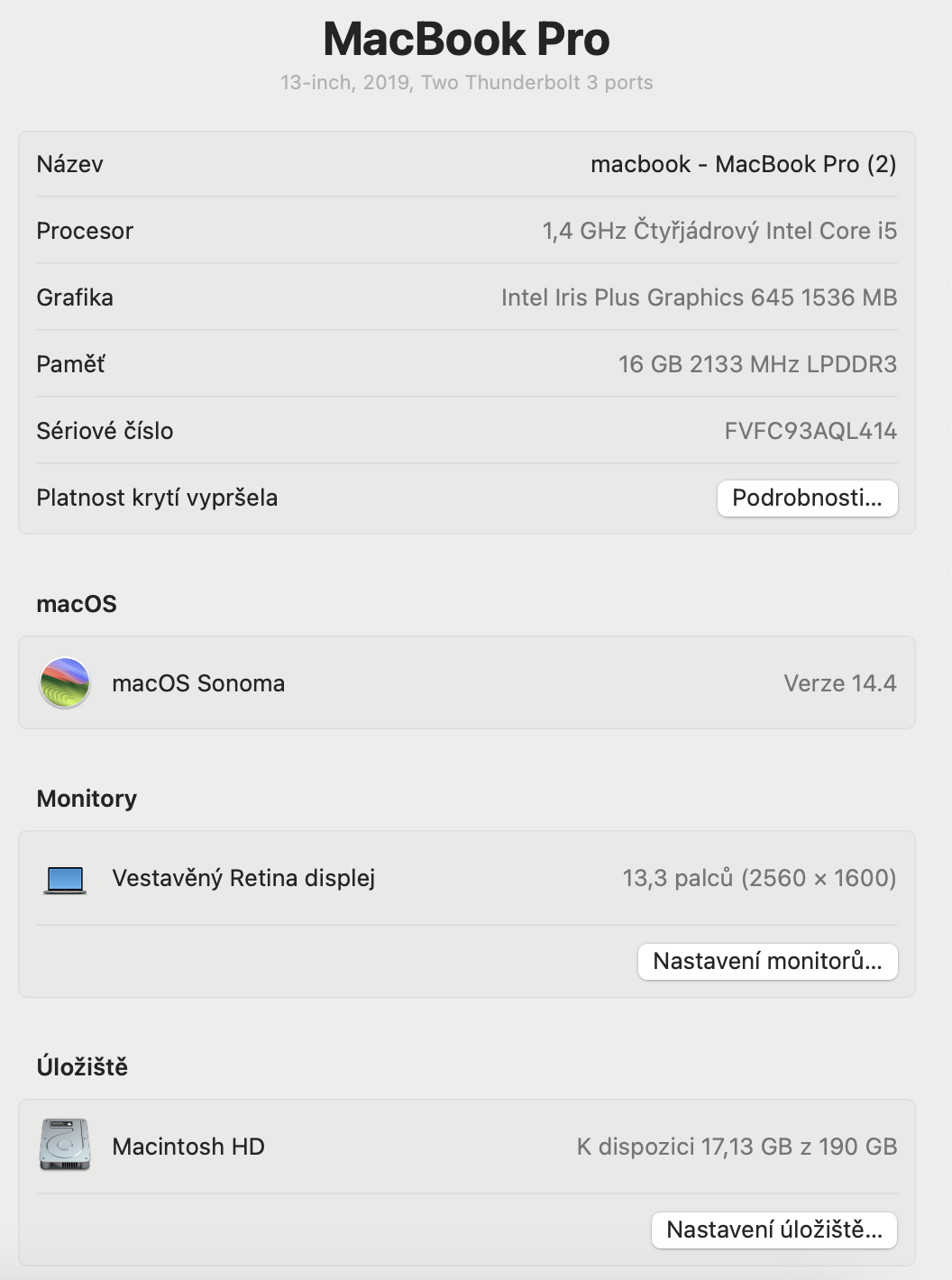 U macbooku nefunguje kamera a podsvětlení klávesnice jinak vše v pořádku.