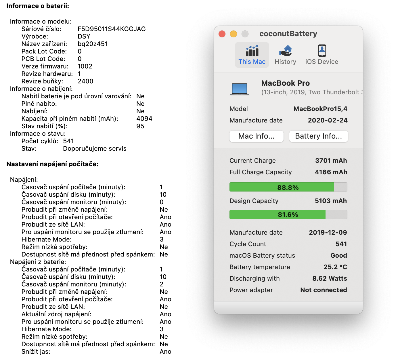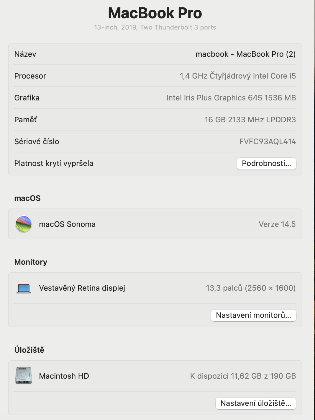 U macbooku nefunguje kamera a podsvětlení klávesnice jinak vše v pořádku.