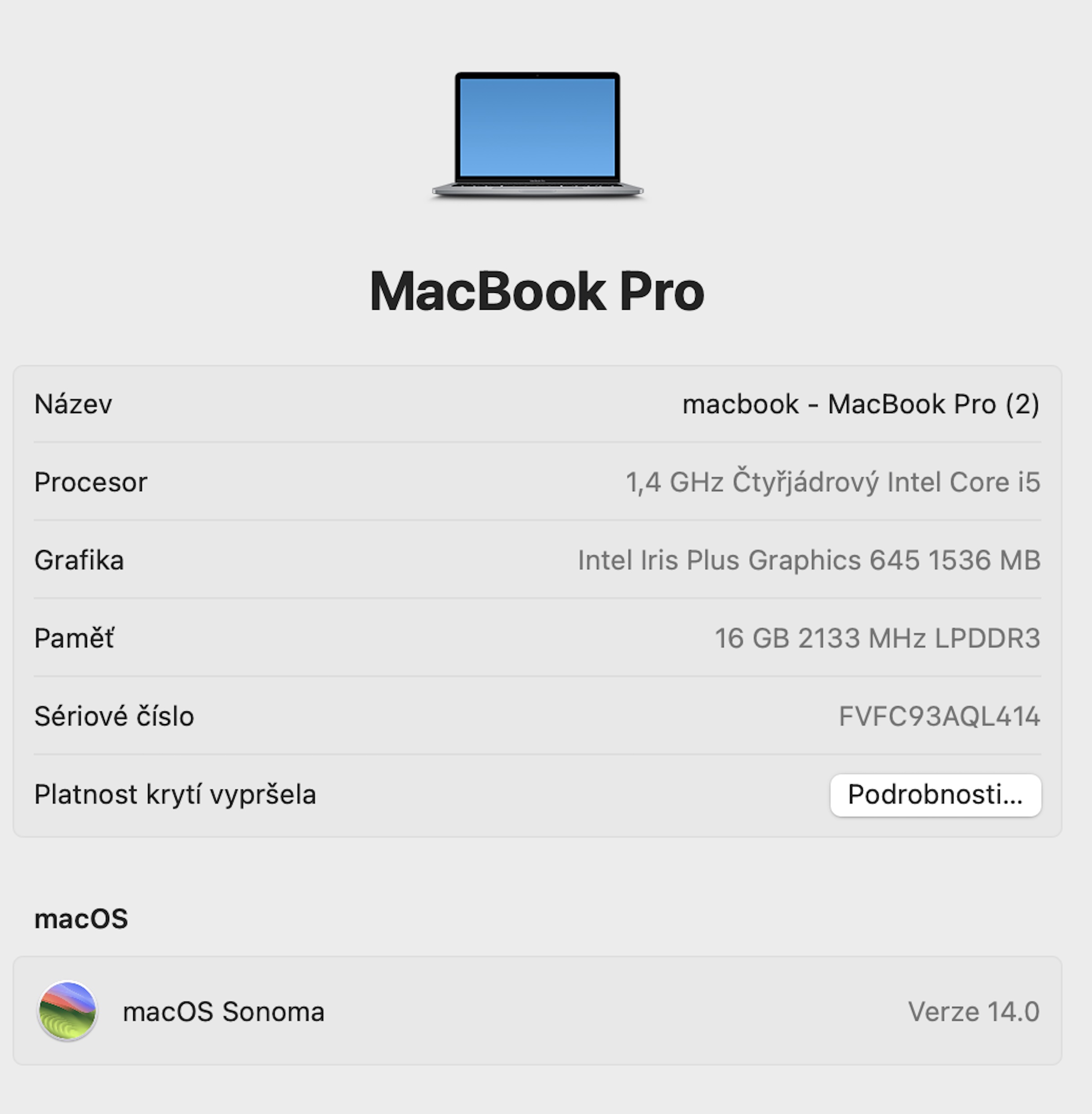 U macbooku nefunguje kamera a podsvětlení klavesnice.
